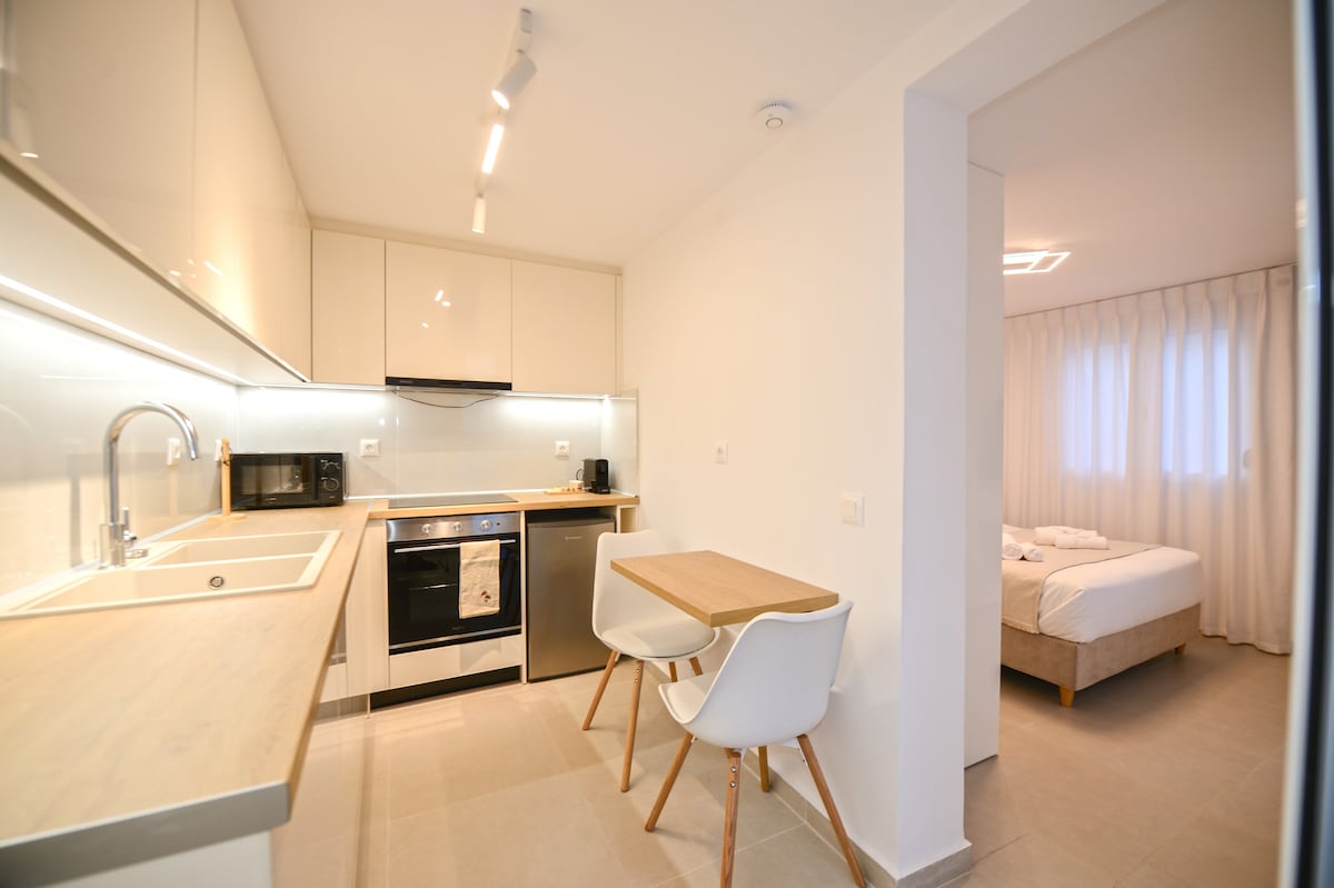 Apartemen era modern mewah di lingkungan perumahan yang tenang, hanya 12 menit berjalan kaki ke pantai terdekat dan pelabuhan tua Chania, di mana pengunjung dapat menemukan berbagai restoran, bar, butik, monumen, toko, dan atraksi lainnya. Bandara ini juga hanya berjarak kurang dari 20 menit berkendara dari apartemen dan kami menawarkan pengambilan dari bandara. Apartemen ini sangat cocok untuk pasangan dan pelawat bisnis.