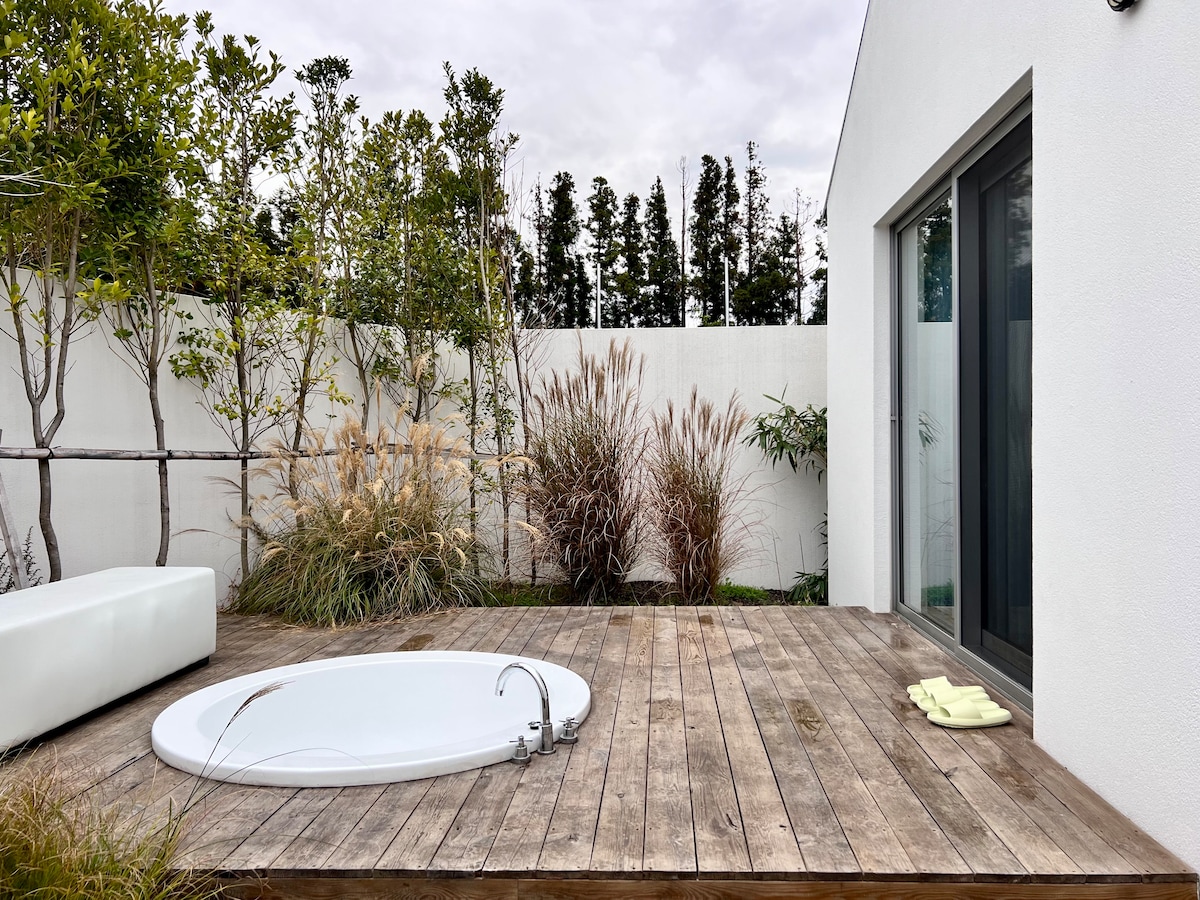 Rumah Pribadi di Hanrim, Jeju | Pemandian Air Panas Pribadi Menghadap Pemandangan Senja Biru ยท Di Atas Pengnang