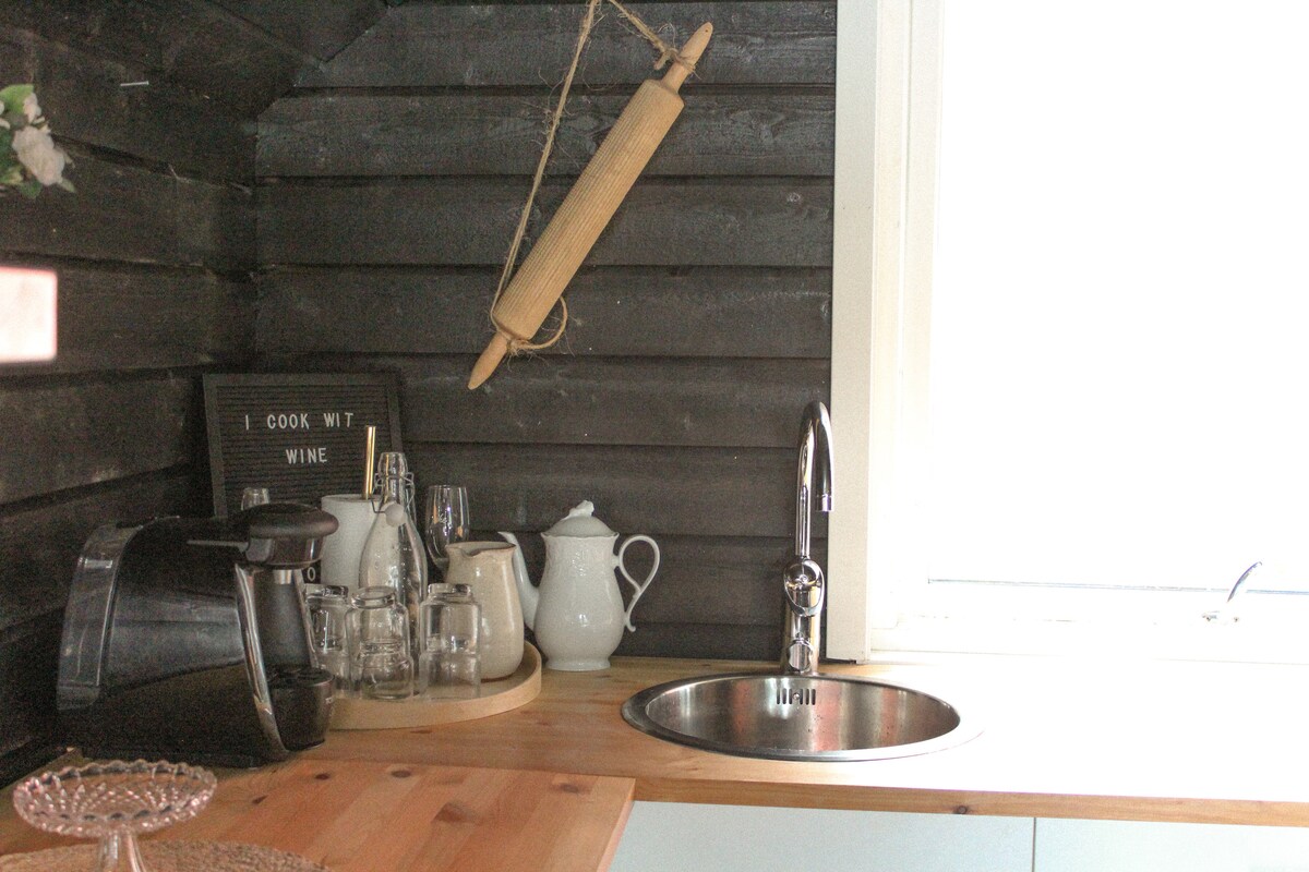 Pondok yang cerah dan modern. Baru dibangun pada tahun 2018. Tempat di atap, kulkas, mesin cuci piring, kompor dan piring memasak. Meja makan dengan kamar untuk 6 orang. TV Kabel dan sofa. Kamar mandi ubin dengan shower hujan. 2 kamar tidur dengan tempat tidur double plus loteng dengan ruang untuk 2-3 buah. Pemandangan pegunungan dan laut. Teras dengan furnitur luar ruangan dan barbekyu.