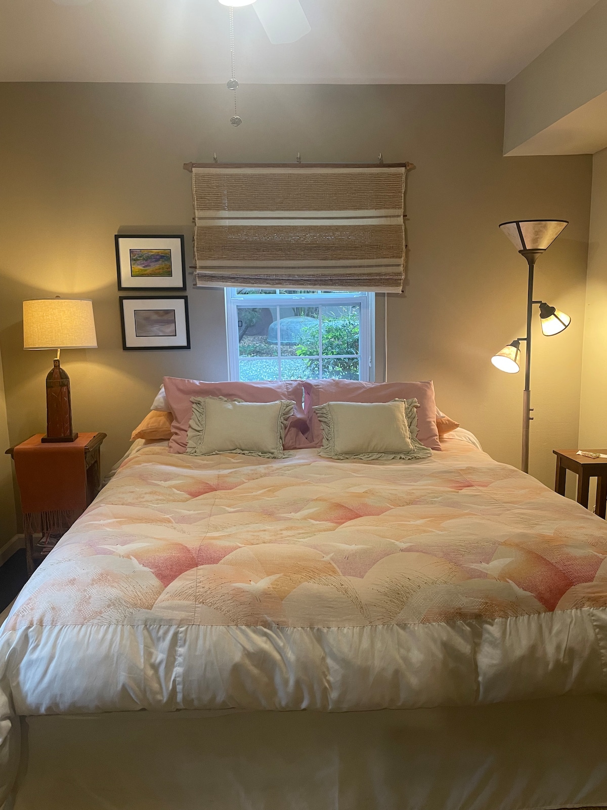 Our private studio is great for couples or single professionals who need a quiet place to work. Studio is furnished with one Queen bed and a two twin beds (trundle bed comes from underneath the twin bed in the picture. Private bathroom and access to our backyard, some guests have used it for Yoga, Meditation and for their kids to run around 10 minute drive to downtown and/or main beaches. Private parking space included for one vehicle. Only minutes from hiking trails, UCSB, Beach, etc.