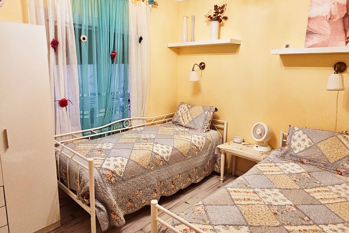 Bright and peaceful home near the beach and Metro L9. Private room in a spacious apartment with a 50m terrace, BBQ, and hammock. Complimentary breakfast for all diets. Two friendly cats live here—please note if allergic. Laundry service available for a fee. Warm hospitality and clean, quiet space ideal for relaxing or working remotely.