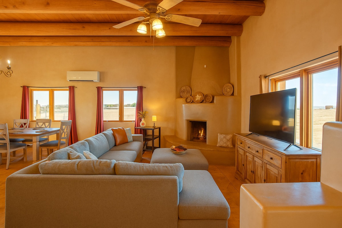 Memimpikan liburan di pegunungan Santa Fe? Kirimkan pesan kepada kami untuk penawaran terbaik! Temukan rumah ramah lingkungan Earthship unik kami dengan bak mandi air panas, pemandangan menakjubkan, ruang tamu, ruang makan, dan ruang kerja modern abad pertengahan. Ruang spa/yoga dan matahari terbenam yang luar biasa di atas Kota dan Pegunungan Jemez. Tempat ini benar-benar dunia yang terpisah, namun hanya beberapa menit dari kota. Nikmati kehidupan berkelanjutan dengan taman dalam ruangan yang menenangkan yang berpadu sempurna dengan juniper dan piñon di sekitarnya.