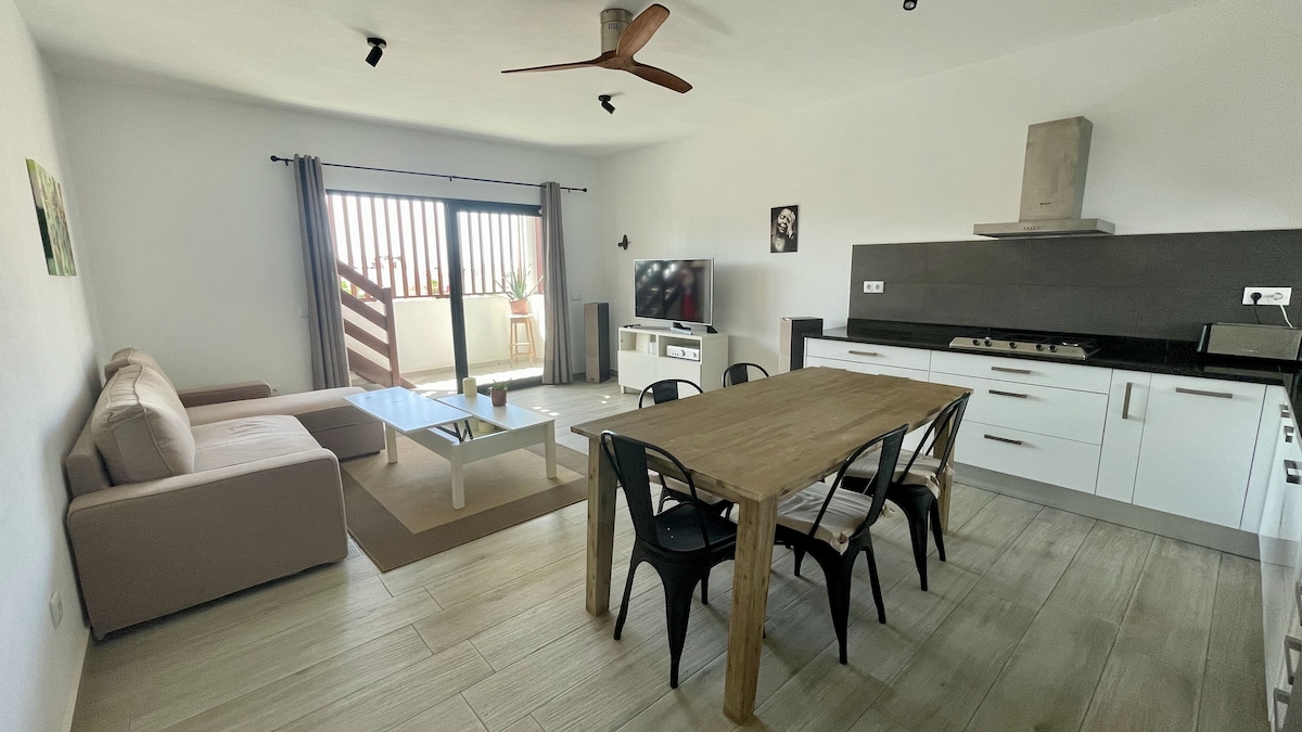 Nikmati masa inap yang menyenangkan di apartemen yang nyaman hanya beberapa langkah dari Pedonale dan khususnya beberapa langkah dari pantai (sisi Pontão). Apartemen ini memiliki 1 kamar tidur dengan tempat tidur queen-size, 1 sofa bed queen-size, 1 kantor, 1 balkon berukuran 6m2 Untuk Digital Nomad: Memiliki kantor khusus dengan kursi yang nyaman dan wifi. Untuk Berselancar layang-layang, Berselancar, Menyelam: - Titik Surf & Kitesurf School, <1 menit dengan berjalan kaki - Santa Maria Center, <1 menit berjalan kaki - Surf Hub Cabo Verde, <5 menit berjalan kaki
