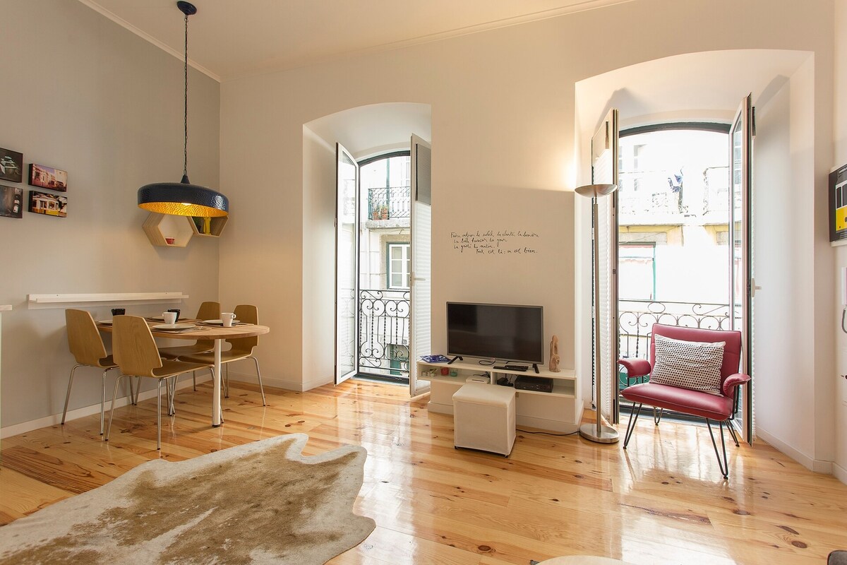 Di lantai atas gedung abad ke-18 di pusat kota Baixa, apartemen ini memberikan pendekatan desain kontemporer pada Warisan Pombalino yang diklasifikasikan. Memiliki AC, 2 kamar tidur +1 kantor, 2 kamar mandi, dapur lengkap, dan area sosial yang luas, Anda akan merasakan suasana ruang terbuka, dengan langit-langit kayu tinggi dan pemandangan ke beberapa atraksi Lisbon. Menaiki tangga 5 lantai (tanpa lift) adalah bagian dari pengalaman menginap di "Airbnb Terbaik di Lisbon untuk Desain Warisan" (Condé Nast Traveler).