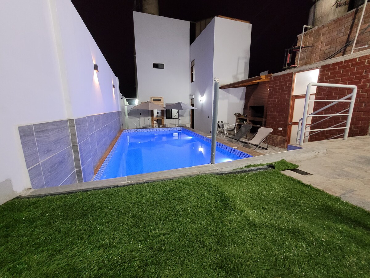 Diviértete en este alojamiento con estilo. Disfruta de la tranquilidad de vivir cerca al mar. Un lugar donde compartir con toda tu familia y amigos. Disfruta de nuestra piscina con hidromasaje y luces LED . Piscina temperada tiene costo adicional en época de verano (S/.100 adicional por noche a partir de 15-Noviembre ) consultar antes .