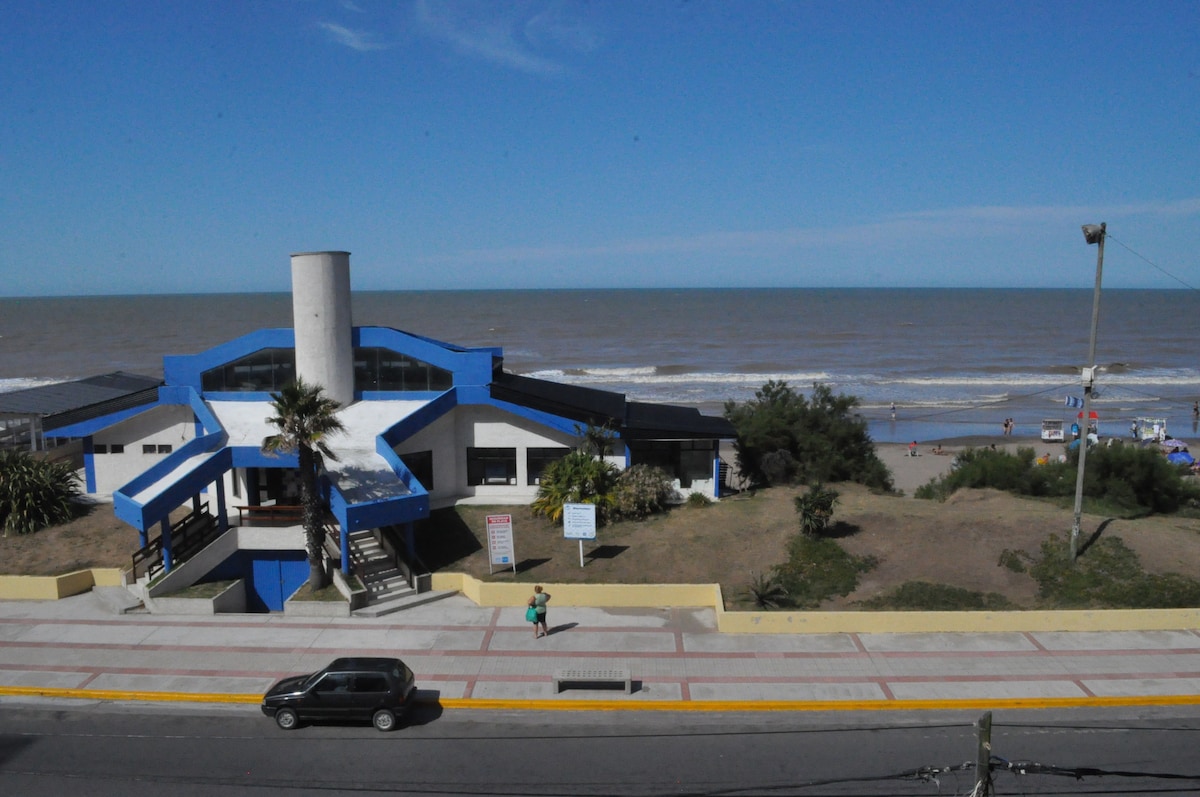 Studio c/ split sangat lengkap di kawasan terbaik Mar de Ajó, menghadap laut dan 100m dari pusat perbelanjaan. Balkon menghadap laut, lengkap untuk keluarga hingga 4 orang Tempat tidur 2 - alun dan tempat tidur beroda. Dapur dengan ruang cuci (kulkas dengan freezer, freezer, microwave, ketel listrik, pemanggang roti, juicer, peralatan makan lengkap dan kompor/oven gas alam) Wifi, TV LED 42"dengan DirecTV, DVD, dan Mini - komponent. Kamar mandi lengkap. Pengaturan tempat tidur, payung, dan permainan pantai.
