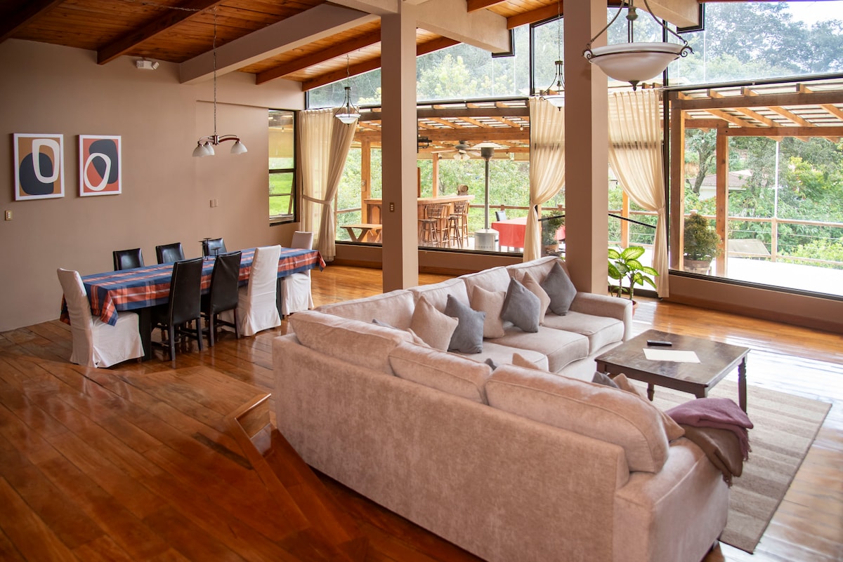 Bersantai bersama seluruh keluarga atau teman - teman di rumah ini yang ketenangannya bisa bernapas. Kabin ini adalah tempat yang sempurna untuk menikmati alam dengan ruang luar ruangan yang luas, pemandangan gunung berapi, area perapian, dan ruang permainan. Terletak hanya 3 menit dari San Lucas dan 20 menit dari Antigua Guatemala. Properti ini adalah properti besar dengan kabin yang dilengkapi untuk 11 orang dan apartemen untuk 5 orang. Terletak di sektor yang tenang dan memiliki tempat parkir yang luas di dalam properti.