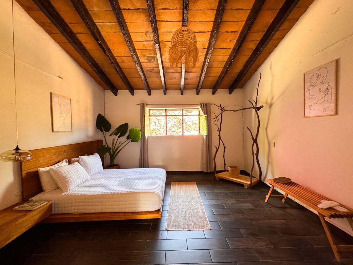 Selamat datang di Ixaya, loteng mewah yang dirancang untuk menawarkan kenyamanan, privasi, dan suasana relaksasi mendalam di tengah alam Tepoztlán. Di sini Anda akan menemukan tempat perlindungan yang ideal untuk beristirahat: tempat tidur berukuran king, Jacuzzi pribadi yang dipanaskan (biaya tambahan), dapur lengkap, jendela besar, dan dua taman eksklusif yang memenuhi setiap ruang dengan cahaya dan ketenangan. Terletak di komplek perumahan yang tenang dan aman, hanya 12 menit dari pusat kota, Anda bisa menikmati energinya yang unik.