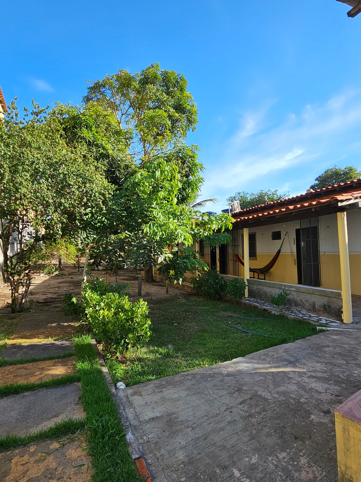 Rumah dengan 3 kamar tidur yang menjadi suite, semua lingkungan dalam ruangan dengan AC, 2 kamar mandi, ruang besar dengan 2 tempat tidur sofa dan smart TV, dapur besar, area luar ruangan tertutup, alas kaki halaman dan dengan tempat teduh, kolam renang dan barbekyu, wifi. rumah yang baru direnovasi dengan koreksi yang diminta oleh pelanggan Terletak di Lingkungan Ladeira, di belakang Sekolah Cincinato Ribeiro Rego, menghadap Sungai Preguiças, dekat bukit pasir dan Av. Beira Rio