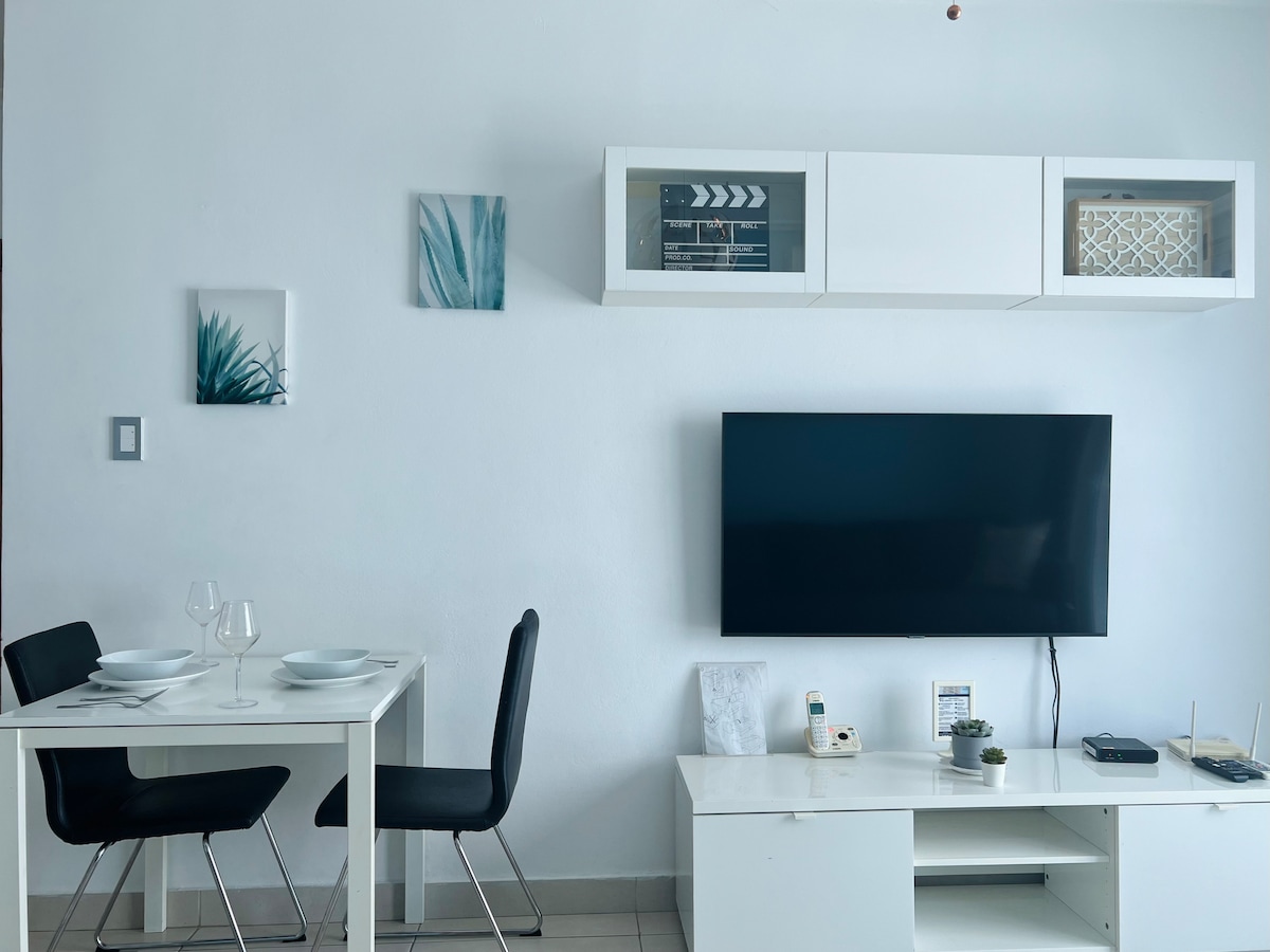 •Terletak di pusat kota Santo Domingo •Luas 810 kaki persegi dengan 1 kamar tidur 1 tempat tidur + 1 tempat tidur sofa •Cocok untuk pasangan dan bekerja jarak jauh •Atap dengan kolam renang, jacuzzi, pusat kebugaran, dan area pijat •Atap adalah ruang bersama -Layanan lobi 24/7 •Dapur dengan semua peralatan dasar •Balkon dengan pemandangan indah •58 smart TV • Wi - Fi nirkabel gratis, Netflix, dan parkir pribadi •Beberapa menit berjalan kaki ke tempat - tempat menarik untuk bersantai, makan, dan berbelanja