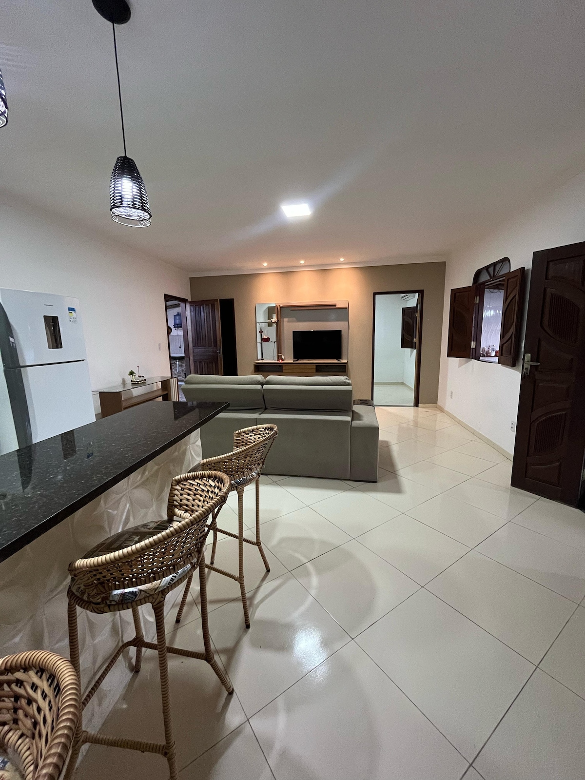 Relaxe com toda a família nesta acomodação tranquila e venha respirar um pouco de ar puro. Casa com 2/4 ( 1 suíte) com ar-condicionado, banheiro social, cozinha americana equipada, sala com sofá retrátil e TV, piscina, área gourmet e área de serviço.