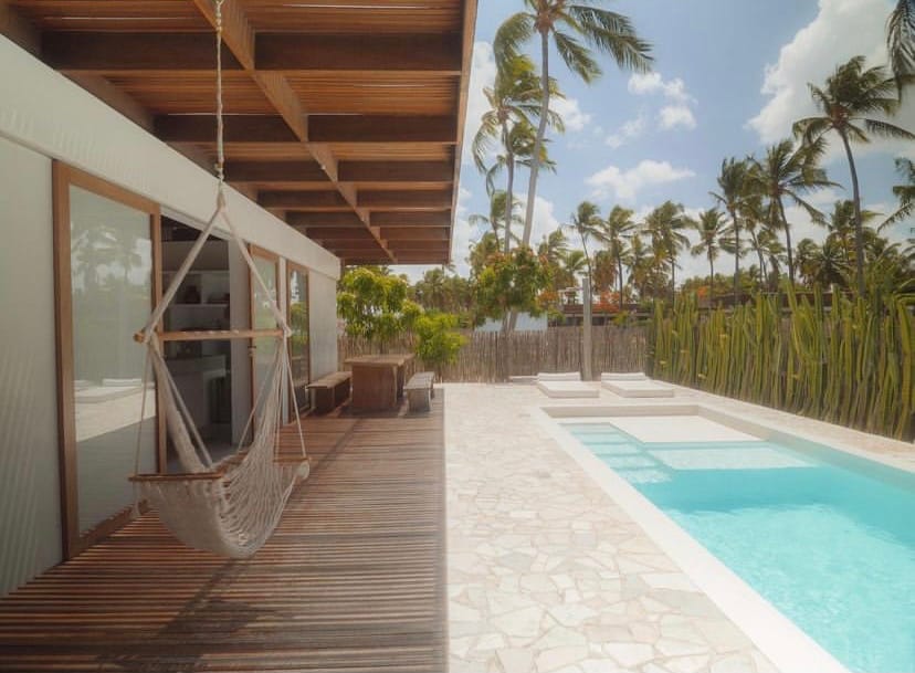3 suite nyaman, ruang tamu dan dapur terbuka, kolam renang pribadi, perapian, pemanas gas, dan internet serat optik. Dikelilingi oleh pohon kelapa, rumah ini, yang dirancang oleh Atelier Branco pemenang penghargaan, menonjol karena taman kaktus mandacaru yang dirancang dengan cermat dan dekorasi yang halus. Terletak di kondominium eksklusif dengan 6 rumah lainnya dan keamanan 24 jam, hanya berjarak 5 menit berkendara dari pantai dan restoran terbaik.