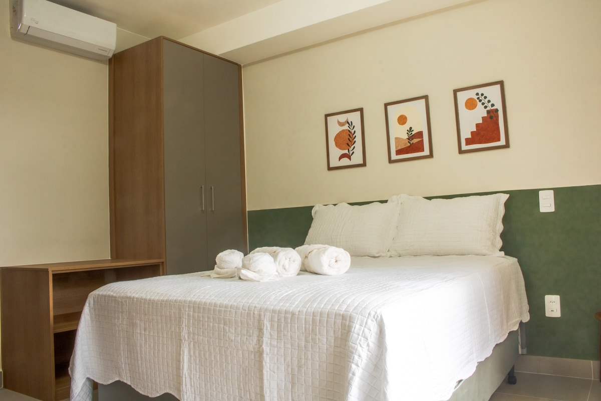 Studio seluas 26m² dengan dekorasi tanda tangan arsitek di jantung Jardins. Di lingkungan yang nyaman dan ideal bagi orang - orang yang bepergian sendirian, di antara teman, pasangan, dan keluarga dengan anak - anak! Kami menerima hingga 4 tamu dengan kenyamanan dan fleksibilitas Kami terletak 3 menit dari R yang terkenal. Oscar Freire: aman, penuh dengan restoran, toko, apotek, dan pasar Di wilayah tengah, ideal untuk qm tb Anda ingin menjelajahi titik - titik penting kota, seperti Taman Ibirapuera, Faria Lima Avenue, antara lain