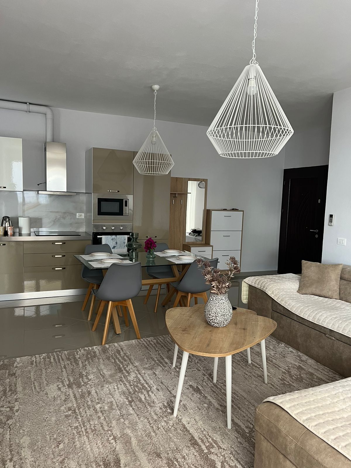 Selamat datang di Kamar Triple Deluxe kami di Golden Rays Suites, yang terletak hanya beberapa langkah dari pantai di pusat Sarandë. Kamar yang elegan ini ideal untuk hingga empat tamu dan dilengkapi dapur lengkap, kamar mandi yang luas, dan balkon besar dengan pemandangan Laut Ionia yang menakjubkan. Nikmati kenyamanan modern, desain bersih, dan lokasi terbaik – dekat dengan bar pantai, restoran, pasar swalayan, dan segala yang Anda butuhkan untuk liburan yang sempurna.