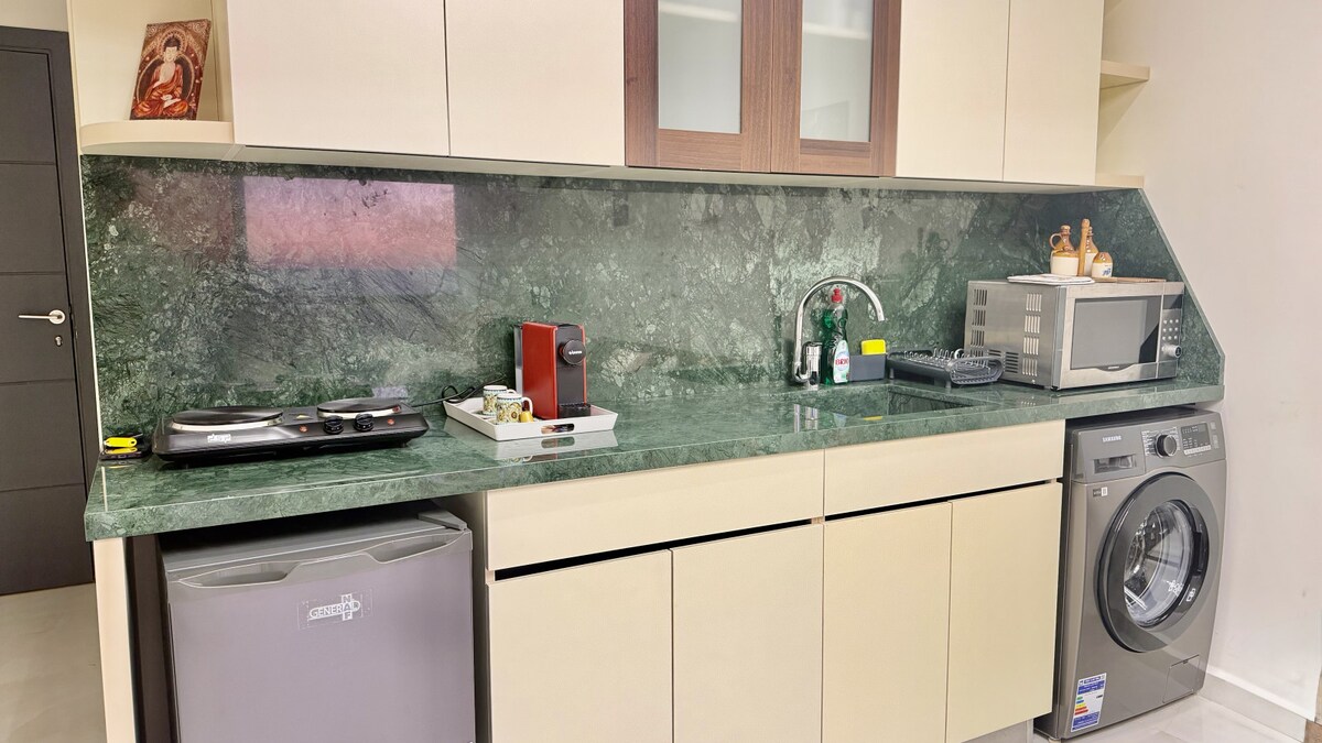 Selamat datang di Amber, studio pemandangan laut modern dan minimalis yang berada di lantai 10 di pusat Kaslik. Bangunlah untuk menikmati pemandangan laut panorama tanpa halangan melalui jendela yang luas, nikmati kenyamanan lokasi sentral di samping Timberland dan Geox, dan melangkah keluar ke pantai dan kehidupan resor hanya beberapa menit. Dirancang untuk pasangan, wisatawan solo, dan liburan akhir pekan, Amber menawarkan setiap fasilitas penting untuk masa inap yang nyaman dan berkesan di tepi laut.