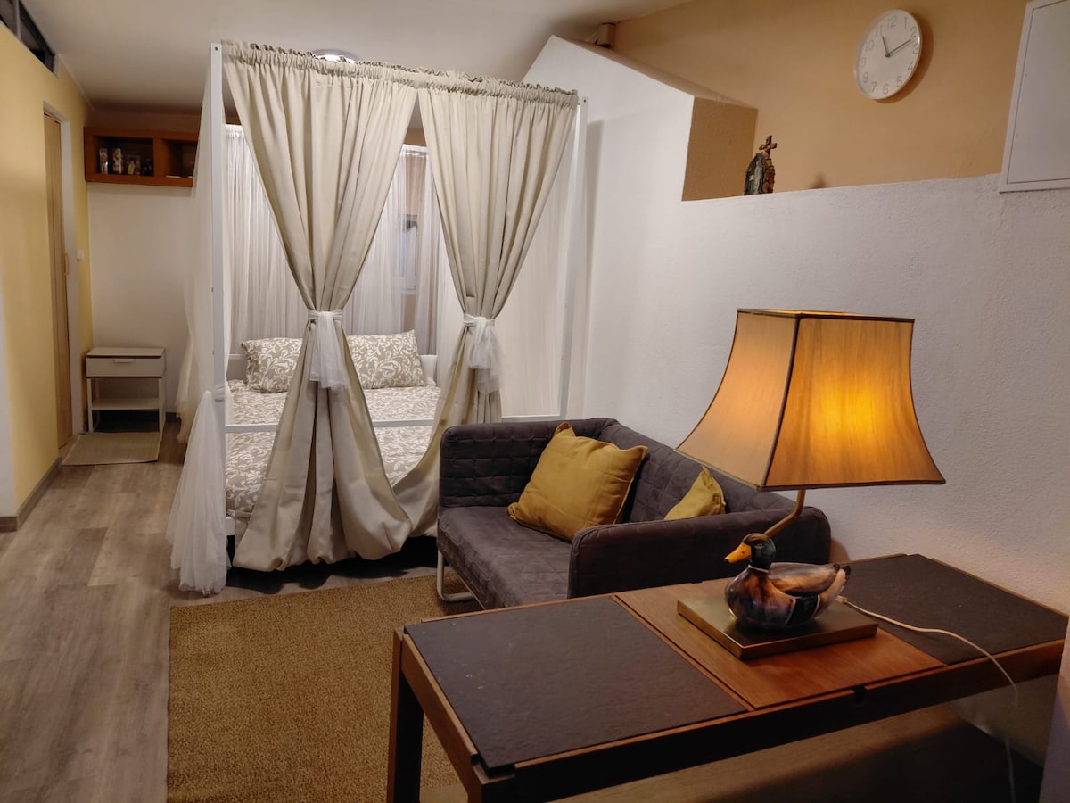 Estúdio privado confortável no N2 OverlanderLodge, ideal para descansar no interior de Portugal. Dispõe de cama de casal, e beliche, com capacidade até 4 pessoas (2 adultos e 2 crianças), casa de banho privativa, kitchenette equipada, acesso às zonas exteriores e estacionamento privativo. Local tranquilo, rodeado pela natureza e próximo da Estrada Nacional 2. Perfeito para famílias, viajantes, caminhantes e escapadinhas relaxantes.
