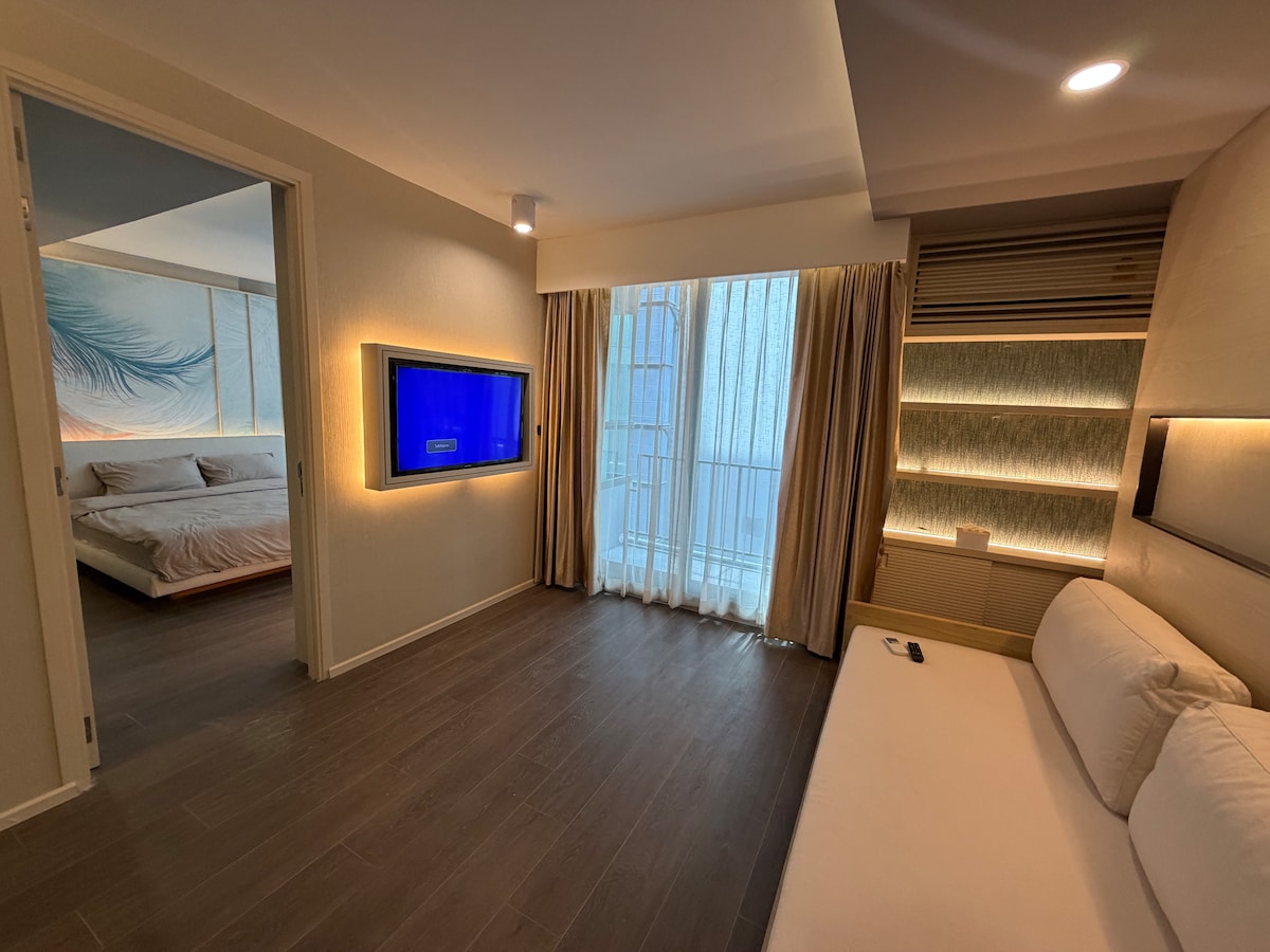 Kondominium Pemandangan Laut di Veranda Resort Pattaya – Penginapan Tepi Pantai Bintang 5 Selamat datang di kondominium desain modern berukuran 35 meter persegi kami di Veranda Resort Pattaya yang mewah, hanya beberapa langkah dari Pantai Jomtien. Cocok untuk pasangan, keluarga, atau rombongan kecil yang mencari liburan yang damai namun bergaya. Kamar ini menampilkan dekorasi terang yang terinspirasi laut dengan tempat tidur berukuran king yang nyaman, tempat tidur sofa, AC, TV, seprai dan handuk kelas hotel, dapur kecil lengkap, meja makan, semua siap untuk memberikan kenyamanan rumah