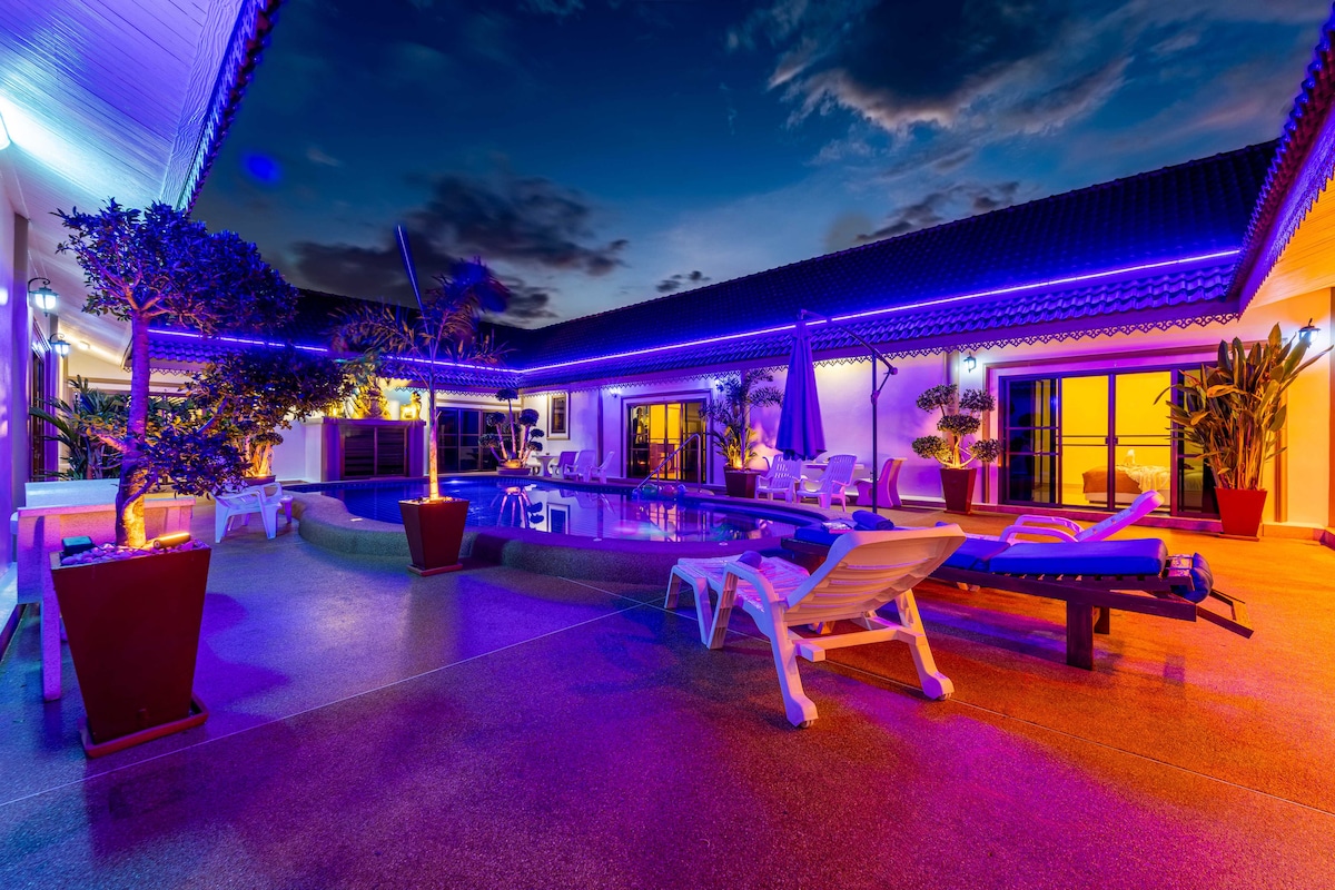 Unwind in Luxury: Your Perfect Family Getaway! Siam Court, #1 on Trip Advisor, offers your private sanctuary ideal for families! Unwind in 7 luxurious poolside bedrooms. Sparkling pool, steps from pristine Bang Saray beach. ️ Explore thrilling waterparks, immerse yourselves in the wonders of Nong Nooch Gardens, or tee off at nearby championship courses. Savor Thailand's culinary magic at local bars & restaurants! Unwind, Explore, Savor: Book your unforgettable Thai escape now!