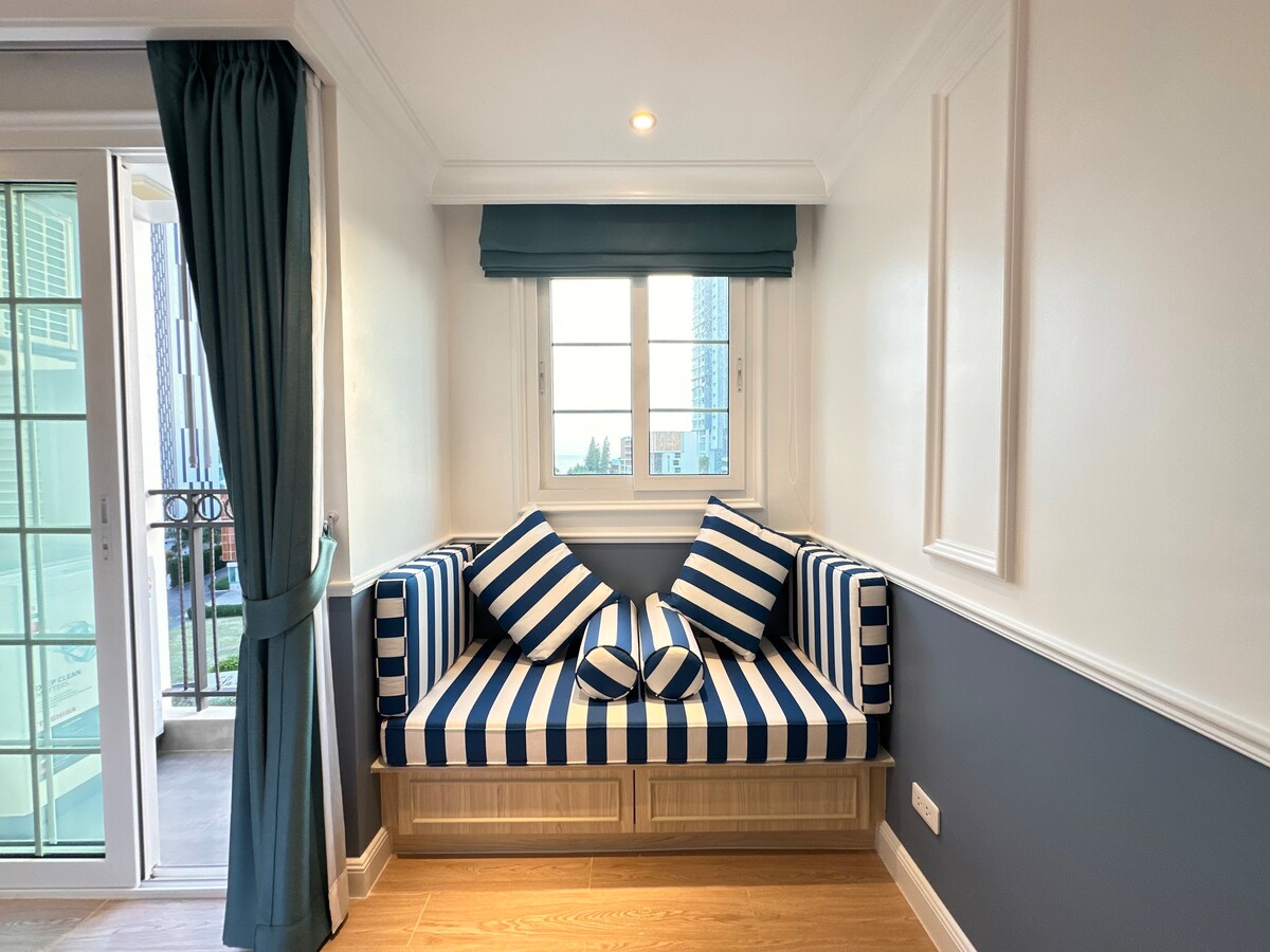 Ukuran sebenarnya adalah 36,5 meter persegi (harga yang lebih rendah mungkin untuk 24 meter persegi), ada dua kamar terpisah, dengan tempat tidur 1,8 x 2 meter dan sofa bed 1,5 meter, yang bisa menampung dua orang dewasa dan dua anak di bawah 17 tahun. Lingkungan yang indah, hanya 300 meter ke pantai pribadi dan laut.Kamar dilengkapi dengan peralatan lengkap untuk memasak.Apartemen ini dilengkapi dengan kolam renang yang indah dan unik, gym gratis, ruang yoga, area kantor umum, pemandian air panas, sauna, ruang bermain anak, restoran, parkir gratis, dan keamanan 24 jam. Keuntungan terbesar dari apartemen ini adalah: kolam renang yang indah dikelilingi taman dan rockeries, tempat Anda bisa berenang sambil menikmati pemandangan, dan pada hari Minggu dan hari libur Anda juga bisa merasakan perasaan indah berenang di rockeries dan air mancur. Hanya 500 m dari Sukhumvit Road, 100 menit dengan taksi ke Bandara Bangkok Suvarnabhumi seharga 1500 baht.Di dekatnya terdapat Big C, Lotus's South Pattaya, Outlet Malll dan supermarket lainnya, Nong Nooch Botanical Garden, Floating Market, Tiger Zoo dan tempat wisata lainnya. 5-15 menit berjalan kaki ke 7-11 Supermarket, restoran terkenal The Glass House, Cave Beach Club, Tutu Beach dan Nitan Coffee's Tale Pattaya. Walking Street berjarak 20 menit naik taksi seharga 150 baht, dan 30 menit ke Pasar Ikan Naklua, Terminal 21, dan Sanctuary of Truth.