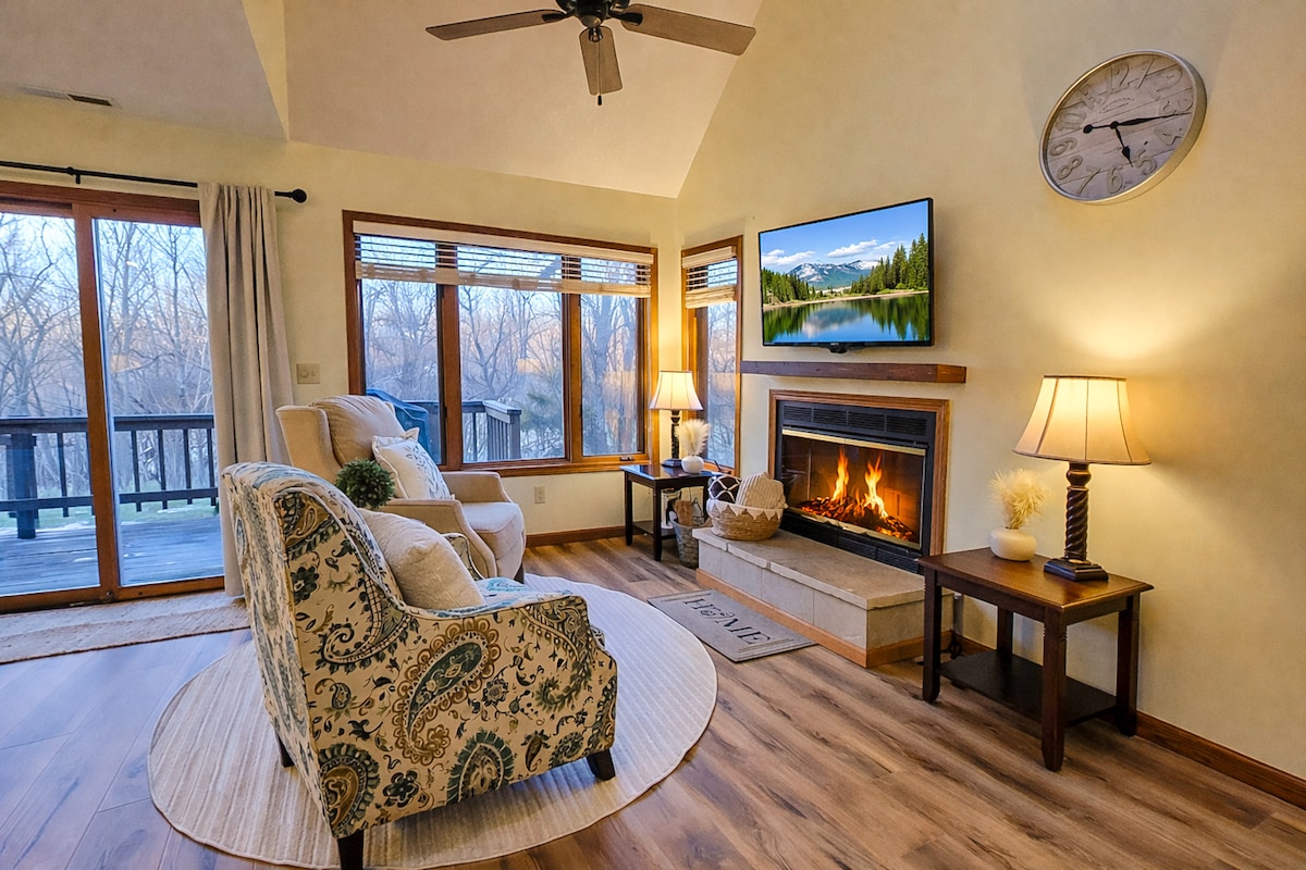 ⭐King bed with plush bedding in a peaceful, private setting ⭐Wood-burning fireplace — perfect for cozy evenings together ⭐2-minute drive to the North Golf Course, driving range, & Stonedrift Spa ⭐Wooded nature views & tranquil surroundings for a relaxing escape ⭐Just 12 minutes to downtown Galena — excellent shopping, dining, & sight-seeing ⭐Access to Owner’s Club amenities including indoor pool & fitness center ⭐15 miles to Chestnut Mountain Skiing ⭐2 Full bathrooms & newer full size sofa bed