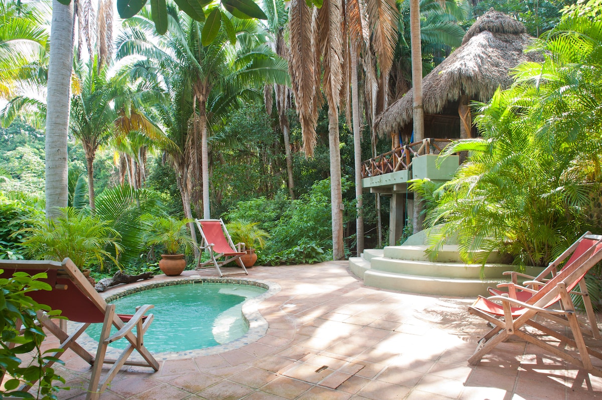 Jungalow mewah ini adalah 1 kamar tidur baru yang indah, di lingkungan tinggal sisi selatan Sayulita yang luar biasa. Ukurannya sempurna untuk pasangan atau keluarga kecil (2 orang dewasa dan 2 anak). Hanya 8 menit berjalan kaki ke alun - alun kota dan pantai. Nikmati angin dan burung hutan dari tempat tidur gantung pribadi Anda atau bermalas - malasan di tepi kolam air terjun air laut dan lounge.