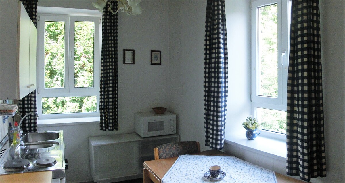 Die Apartement-Wohnung (45 m^2) liegt in einem separaten, ebenerdigen Anbau im Garten des Haupthauses und hat einen eigenen Zugang. Sie liegt im ruhigen Ortsteil Buchenhain der Gemeinde Baierbrunn. Von hieraus ist man schnell in der Münchener City oder in den Alpen. The self-contained appartement is located in the calm district Buchenhain of the community of Baierbrunn some kilometers south of Munich.