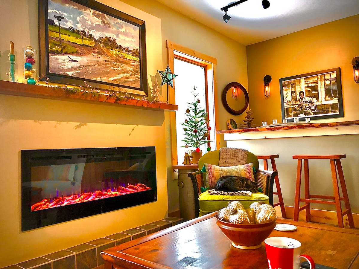 Studio yang diperbarui di jantung Finger Lakes Wine Country, dengan pemandangan unik ke arah Seneca Lake dan kebun anggur dari halaman rumput yang indah. Dekorasi rumah pertanian modern yang terinspirasi, seprai mewah, dapur kecil yang menawan, ini adalah tempat menginap yang sempurna bagi pengunjung yang ingin menjelajahi danau Finger. Manfaatkan perapian kami, mendaki melalui kebun anggur ke sungai kami yang indah, atau berkendara menuruni bukit untuk akses danau langsung di Smith Park. Kamar sangat luas untuk 2 orang namun cocok untuk 4 orang dengan sofa yang ditarik keluar.