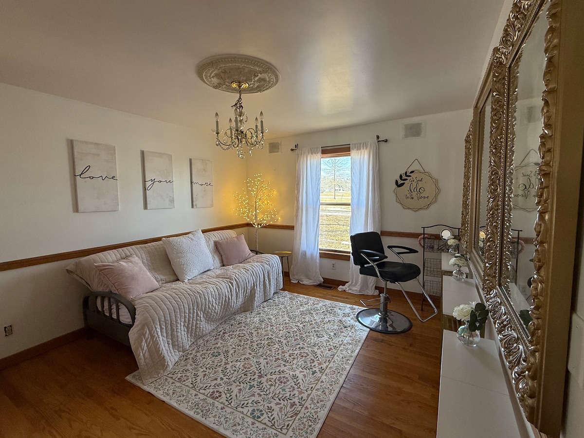 Lingkungan pedesaan yang terpencil ini sangat cocok untuk satu atau beberapa orang yang menginginkan tempat peristirahatan yang tenang dan damai. Apartemen ini berlokasi di ujung jalan masuk sepanjang 1/3 mil di lahan pertanian seluas 165 hektar. Peternakan ini memiliki ladang tanaman seluas 40 hektar, hutan seluas 100 hektar, dan lahan padang rumput seluas 25 hektar yang penuh dengan satwa liar. Batas utara menghadirkan pendakian yang menantang ke tempat tidur sungai yang lebar dengan geodes dan harta karun lainnya.