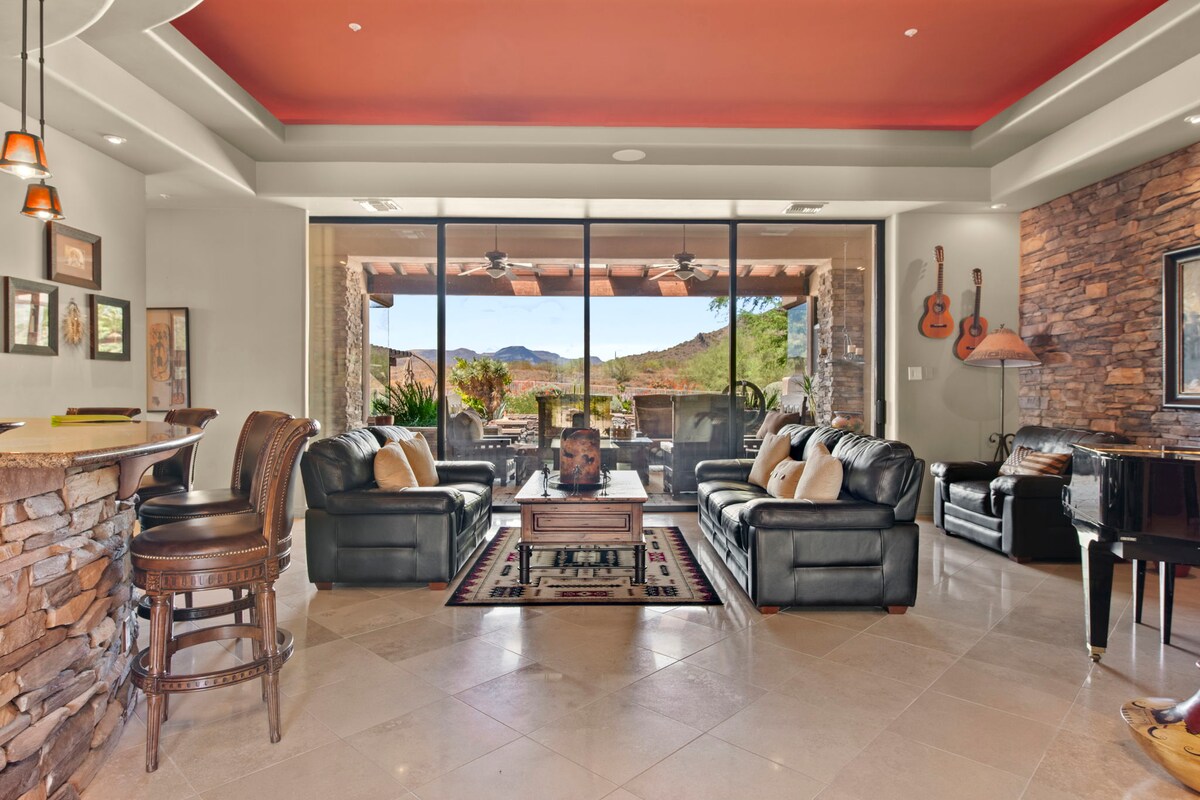 Selamat datang di The Callahan, tempat peristirahatan pribadi bergaya resor di lingkungan tinggal yang diminati di dekat tempat makan, pusat perbelanjaan, golf, dan hiking terbaik. Rumah 5 kamar tidur dan 3 kamar mandi yang luas ini cocok untuk keluarga dan rombongan, yang dilengkapi kolam renang pribadi, lapangan basket, putting green, home theater, pusat kebugaran, perapian, ping pong, dan meja biliar. Nikmati kehidupan dalam ruangan dan luar ruangan yang mewah dan masa inap Arizona yang tak terlupakan hanya beberapa menit dari tempat wisata terbaik di area ini.