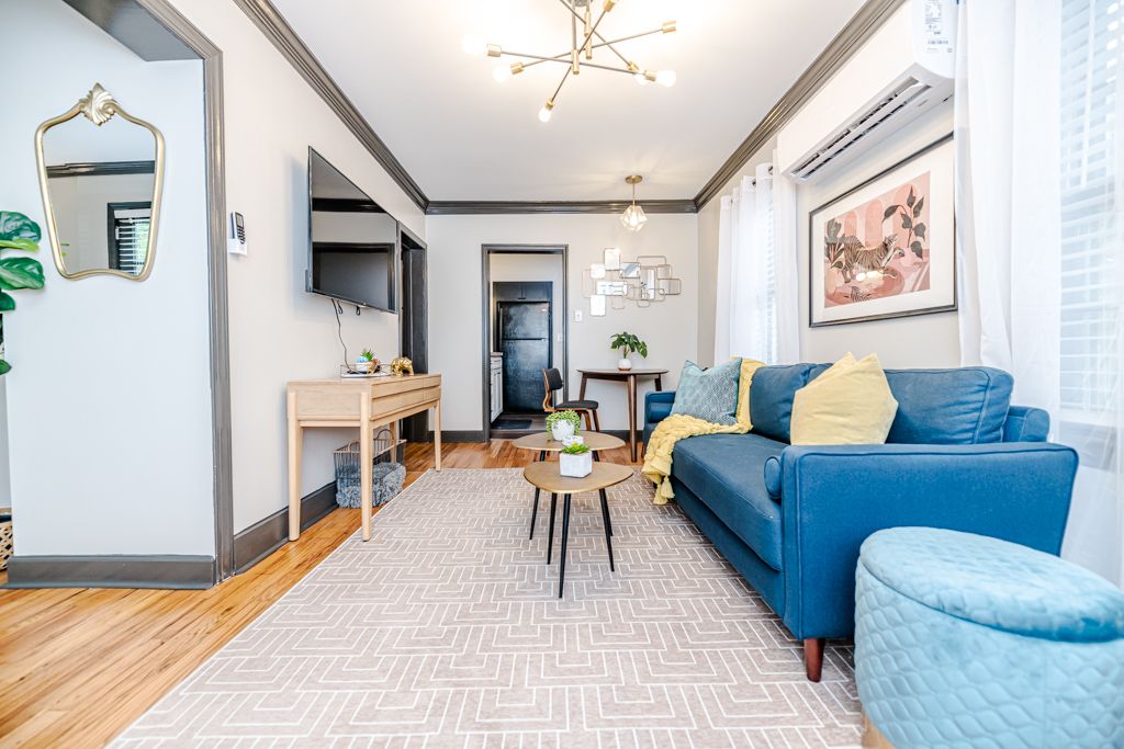 This 1930s cottage is the perfect spot for your stay in downtown Southern Pines. Located on a quiet street, yet close enough to walk to all the shops/restaurants downtown or the Weymouth Center for the Humanities. This unit is downstairs with 1 bedroom (Queen) & 1 bath, a full kitchen, a dedicated work space, and shared laundry room in the back of the home. It has a private entrance from the front door. Come stay with us for a short stay or extended stay!