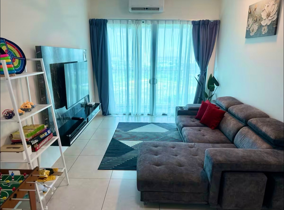 Properti 🏡 3 Kamar Tidur dengan Balkon & Parkir di Perai, Penang 🏡 Rumah 3 kamar tidur yang nyaman: dekat Sunway Carnival (7,7km), Penang Bridge (1,0km). ❄️Kamar ber - AC dan ruang tamu Wi - Fi Berkecepatan📶 Tinggi dengan Netflix dan Youtube 🚿Water heater untuk kedua kamar mandi. 🍽️Dapur lengkap. 🚗2 tempat parkir mobil pribadi Seprai 🧺Bersih, Handuk dan Gel Mandi Disediakan ️Kulkas, ketel, microwave,setrika dan mesin cuci Fasilitas 🏊♂️ kondominium seperti kolam renang, jacuzzi, gym, dan Keamanan 24 JAM