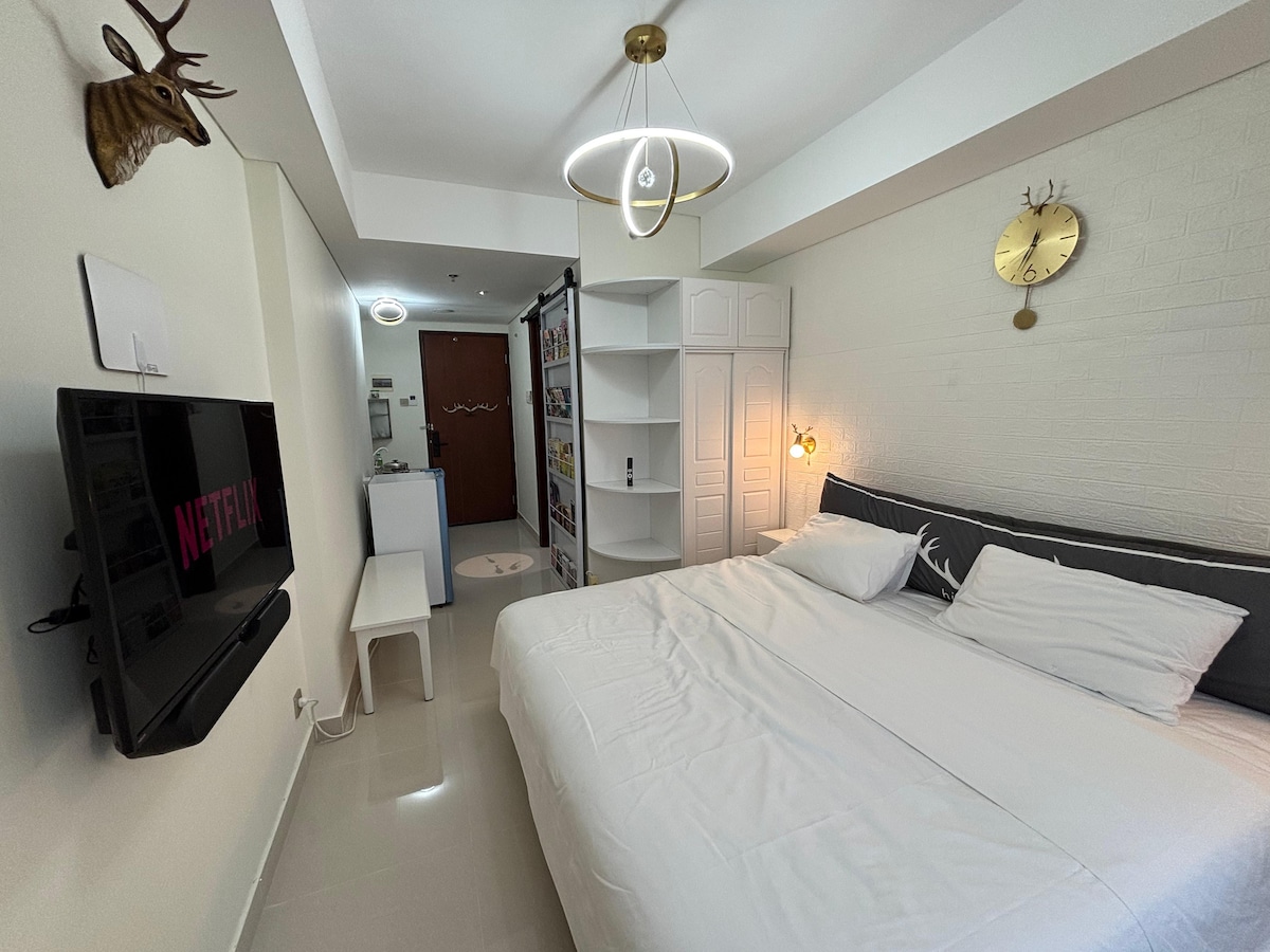 Key Benefit: 💛Skyline City View -28F 💛Responsive Host 💛Flexible check-in/out time (fee apply) 💛Exclusive Kitchen & Living room. Nearby 📍24hr Fast Food 📍Pollux Mall 📍Harbor 📍Market Amenities: ✅ Iron & Board ✅Coffee Machine ✅Premium Tea &Coffee ✅Hairdryer ✅Microwave ✅WiFi ✅Fridge ✅Smartlock ✅Air-Con ✅Welcome Snack & Drink ✅Smart TV ✅Queen Size Bed ✅Toiletries ✅Bath Towels ✅Dustbins ✅Water Heater ✅Washing/Drying Machine Facility ✅Swimming pool ✅Gym ✅Running Track Note: ❌Smoking ❌Party