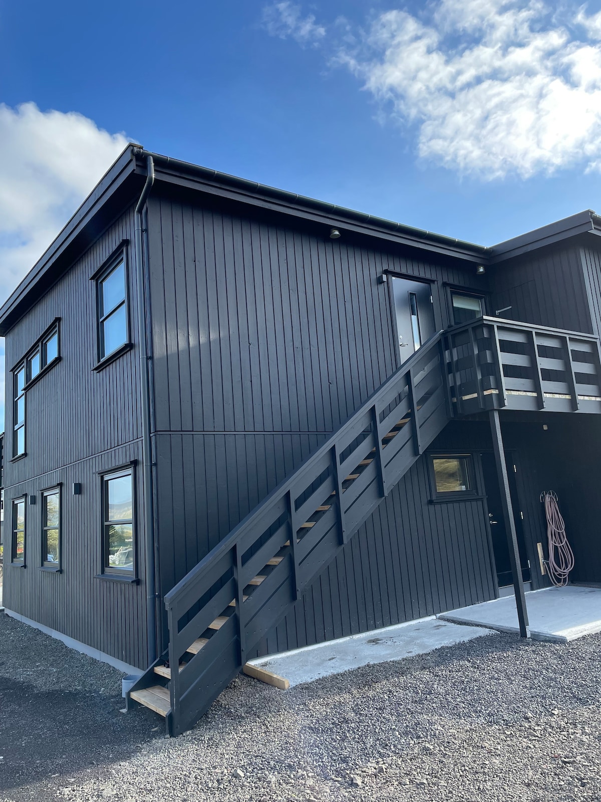 Nyd en stilfuld oplevelse i denne centralt beliggende bolig. Lejligheden er splinterny med alle faciliteter og ligger meget centralt på Færøerne, kun ca 1/2 timers kørsel til alle øerne. Der er 3 soveværelser med dobbeltsenge og et rummeligt badeværelse. Stort køkken-alrum. Alt køkkenudstyr, køle-fryseskab og opvaskemaskine. Alrum med en stor komfortabel sofa og SmartTV med adgang Netflix og Chromecast. Gratis WiFi. God pizza lige om hjørnet/gåafstand. Føl dig hjemme mens du er væk hjemmefra.