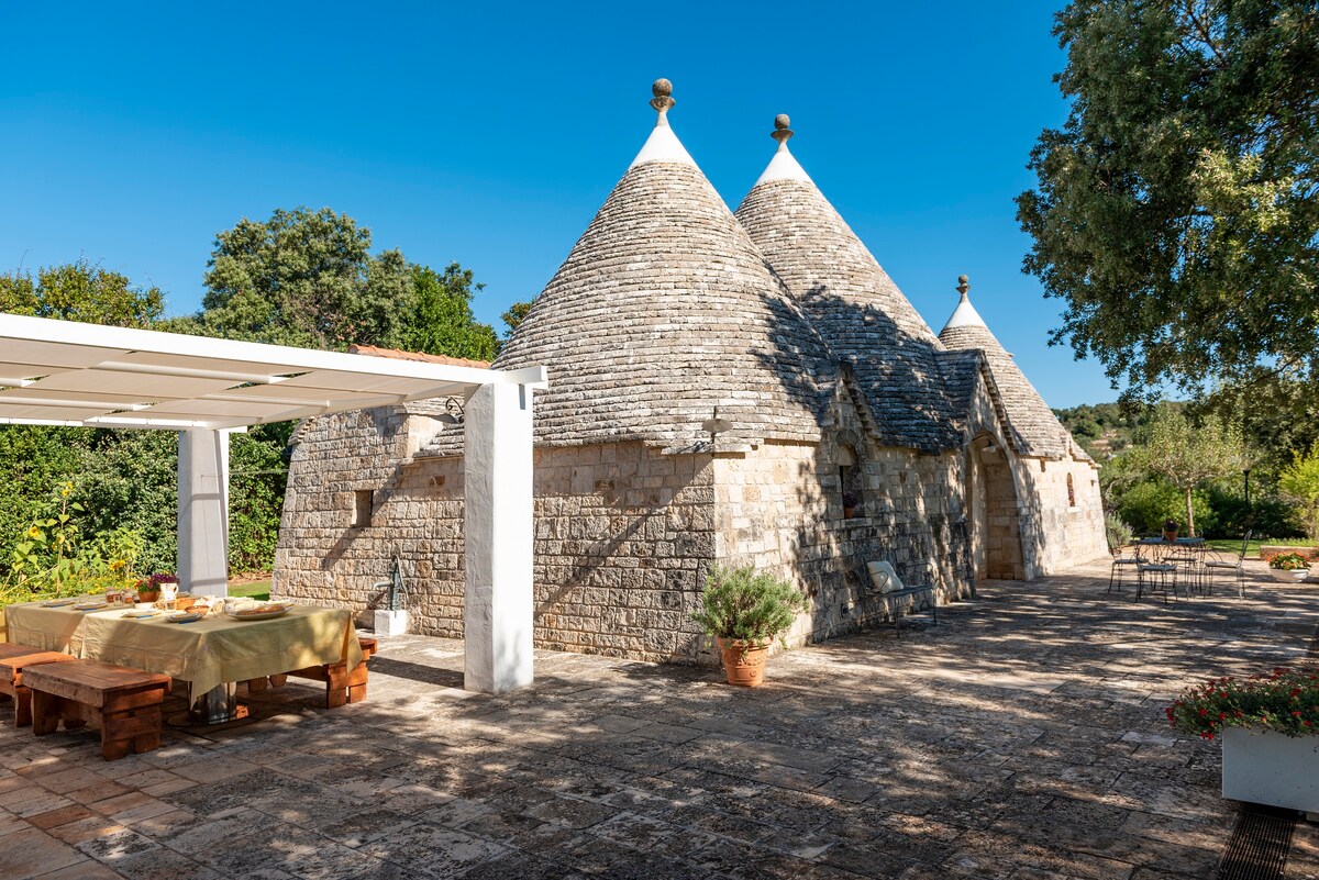 Trullo kami berada di pusat Barsento, daerah perbukitan Apulian dengan dinding batu kering dan pemandangan yang menakjubkan, beberapa kilometer dari Alberobello. Ideal untuk pecinta alam dan wisata, masa inap yang santai atau untuk akhir pekan romantis yang sederhana. Rumah ini nyaman menampung hingga 5 orang berkat ruang dalam dan luar ruangan yang luas. Taman ini disiapkan untuk menghabiskan hari - hari yang menyenangkan di luar ruangan atau saat - saat romansa dan relaksasi dengan jacuzzi luar ruangan.