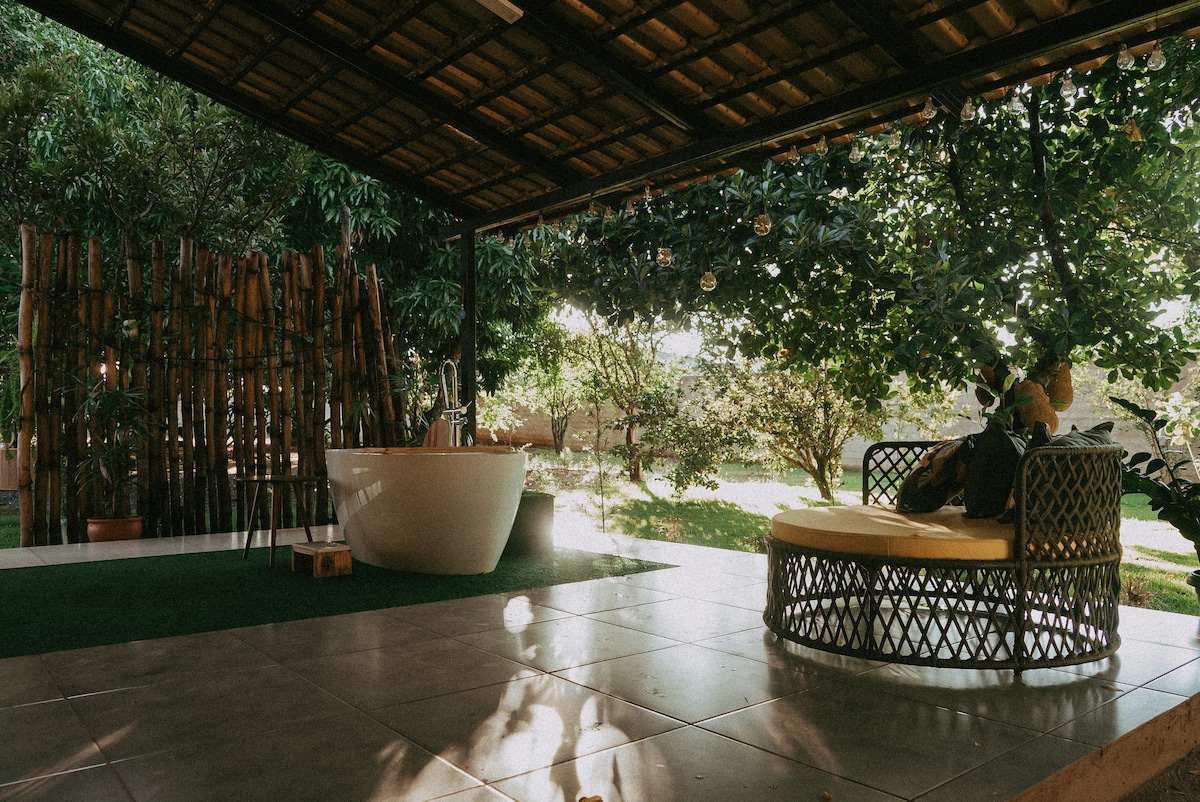 Dengan luas eksklusif sekitar 1000m2, dikelilingi hijau. Bersantai di tempat ini 15 menit dari Goiânia , akses mudah, Anda akan memiliki privasi, tenang di tengah alam dan banyak kenyamanan. Bahan - bahan yang menjadikan chalet Apoena pengalaman unik di dekat ibu kota Goiana, bagi mereka yang suka melepaskan diri dari kebisingan, dan memiliki kenyamanan perapian (dalam dan luar ruangan), wifi berkualitas (starlink), bak mandi, spa, dan proyektor untuk melihat film dan seri Anda dengan penuh gaya.
