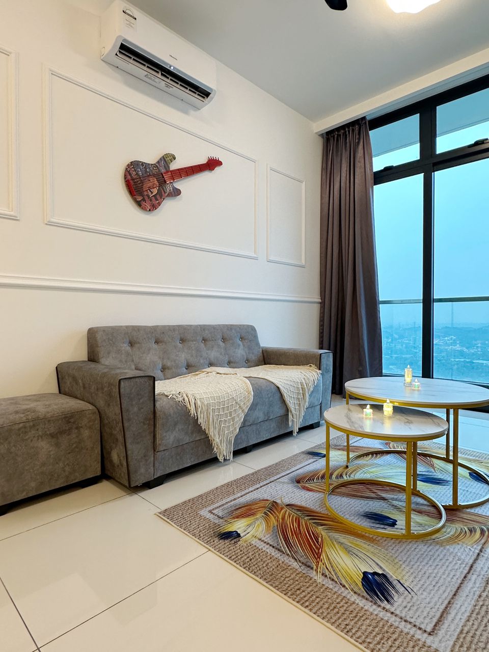 This is a spacious 2Bedroom unit perfectly fit for guests up to 5 pax with total of 1 king size bed 1 queen size bed 1 single bed High floor with high view. 1. Basketball Court 1. Gym Room 2. Function Hall 3. Lounge 4. Library 5. Manicure Shop 6. Mini Theatre 7. BBQ Deck 8. Swimming Pool 9. Sauna 10. Jacuzzi 11. Game room (Pool Table, PS Room, Darts and more) 12. Laundry 13. Mini Market -Sky Garden Guest are not allow to smoke in the room , please smoke at the balcony if needed