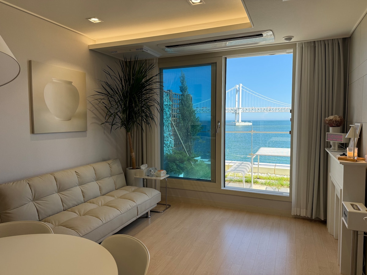 * Anda bisa melihat Jembatan Gwangan, Pertunjukan Drone, Festival Kembang Api, dan menikmati laut "Ocean View"...💕 Kami akan membuat waktu untuk menjadi kenangan istimewa dan tempat penyembuhan bagi tamu yang memilih akomodasi kami!!Kami akan selalu berusaha membuat masa menginap Anda nyaman....🙏 👉 Check - in pukul 16.00 ~/ Check - out pukul 11.00 👉Hormat kami, tuan rumah mengubah perlengkapan tempat tidur (pencucian & sterilisasi suhu tinggi) dan mengelolanya setiap hari!! Terletak 5 detik dari Pantai 👉Gwangalli Infrastruktur terbaik seperti minimarket, restoran, kafe, pub, dan pub👉 terdekat!! 👉Anda bisa menonton Neflix, YouTube, dll. Untuk 👉bayi, harap periksa satu orang tambahan berdasarkan orang dewasa. (Kasur + perlengkapan tempat tidur + handuk disediakan tanpa dikenakan biaya tambahan)