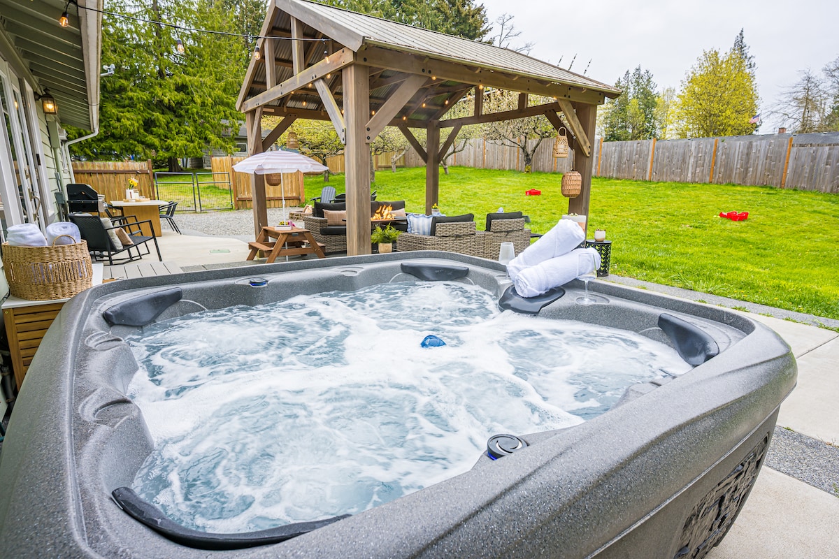 Fenced backyard, private home, hot tub+pets