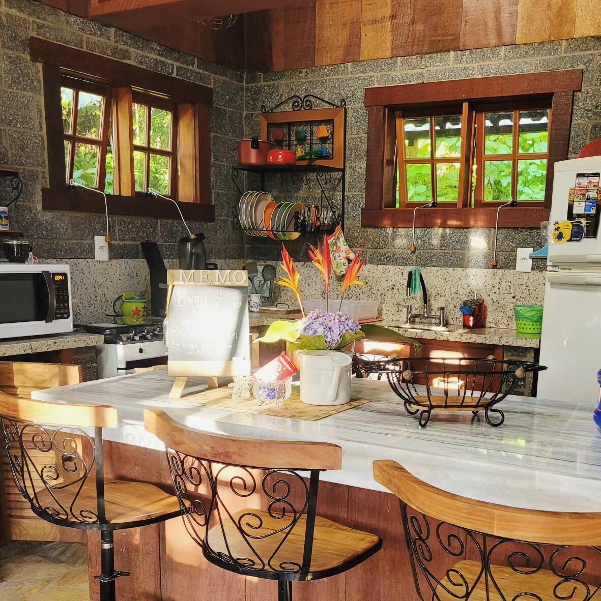 Mungkin (pasti) tempat paling tenang di Teresópolis (oke, seluruh negara bagian Rio de Janeiro). Waktu berhenti, angin sepoi - sepoi selalu dan konstan. Dengan seluruh cakrawala seperti yang terlihat dari jendela mana pun. Cukup dekat dengan peradaban bagi mereka yang merindukan kota. Cukup jauh bagi siapa saja yang ingin melepaskan diri dari kesibukan, rutinitas, dan kekacauan. Kolam renang, area barbekyu, oven kayu, taman bermain, dan banyak warna hijau. Di sinilah ketenangan Anda memilih untuk menghabiskan hampir setiap akhir pekan.