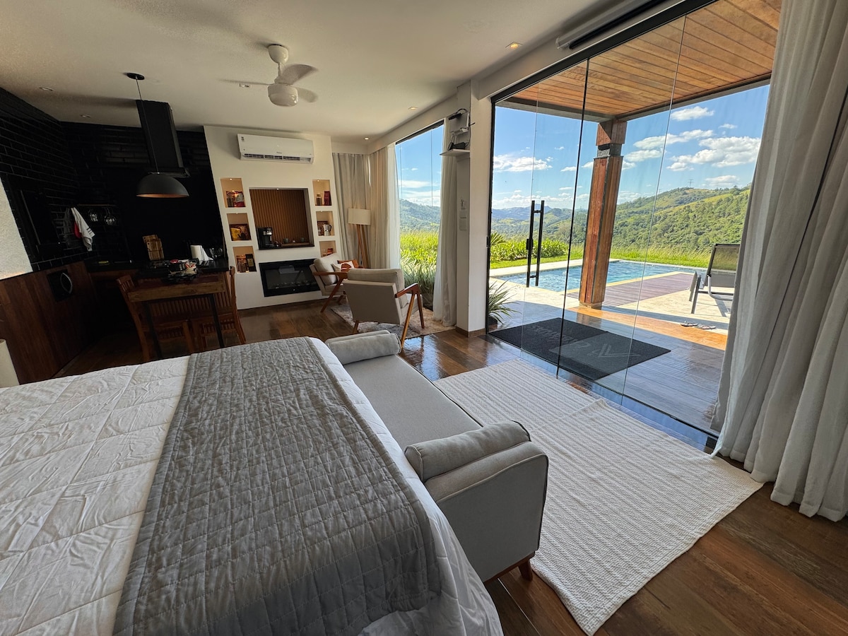 Bersantai di tempat yang tenang dan bergaya ini. Studio pribadi yang luas dan baru direnovasi di lingkungan kelas atas dekat pusat kota. Sangat cocok untuk pasangan yang ingin menikmati kenyamanan dan kemudahan selama menginap. Tempat ini memiliki tempat tidur queen, AC, dapur lengkap, smart TV, Wi-Fi, barbekyu, dan garasi pribadi. Set lengkap perlengkapan tempat tidur, handuk, dan perlengkapan mandi. Lingkungan yang aman, ramah dan ideal bagi mereka yang ingin mengenal Serra Negra dan bersantai dengan tenang