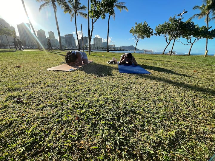 Saat waktu keemasan di Hawaii, perlambat dan ikuti ritme pulau ini. Dikelilingi oleh keajaiban aloha, dengan ombak yang menabrak dengan lembut dan pepohonan yang berbisik bahwa Anda telah tiba, Anda akan mengalir melalui yoga yang lembut dan penuh perhatian saat langit berubah warna. Pengalaman ini berakhir dengan penyembuhan suara yang menenangkan, membuat Anda santai, tenang, dan berseri-seri. Terbuka untuk semua tingkat. Datanglah apa adanya! Anda ditakdirkan berada di sini.