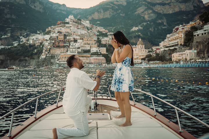 Foto - foto profesional proposal pernikahan di lingkungan pantai Amalfi atau Sorrento yang menggugah.