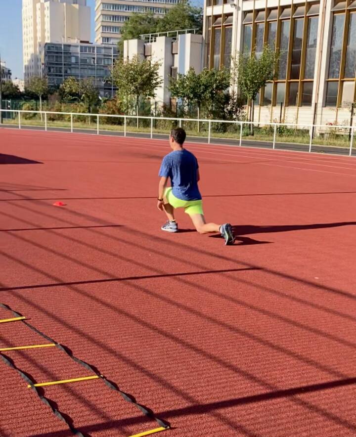Sesi latihan hibrida intensitas tinggi. Cocok untuk atlet berpengalaman yang ingin berolahraga, mempertahankan rutinitas latihan mereka, atau mengimbangi kelebihan masa inap mereka di Paris. Di luar ruangan (taman, dermaga Seine) atau di rumah.