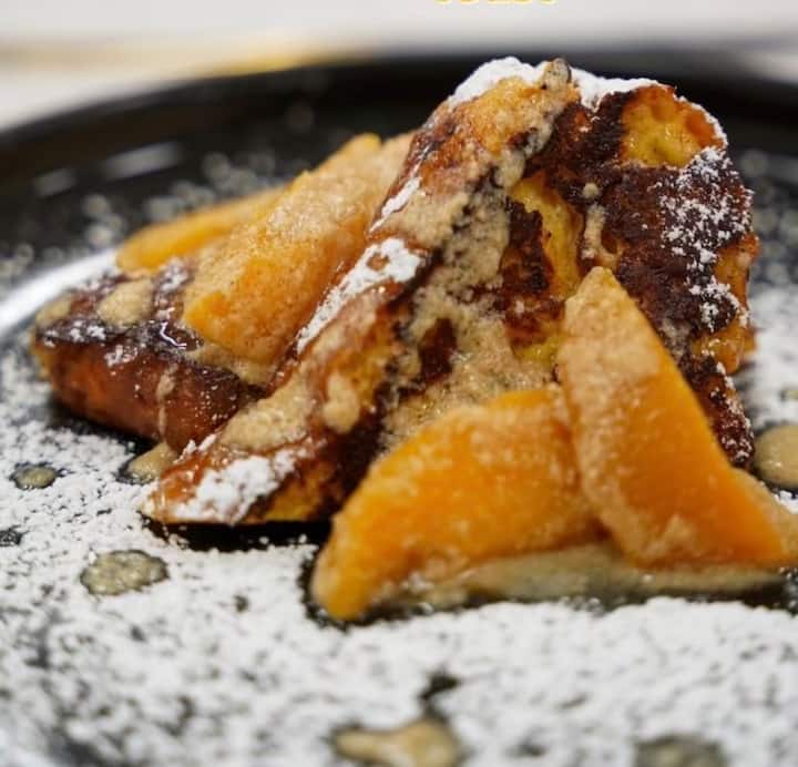 Paket Peach Cobbler French Toast kami dilengkapi dengan telur orak - arik, soul fries, pilihan protein sarapan dan buah segar musiman Anda.
