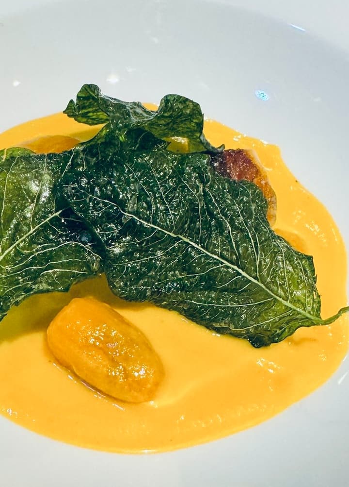 - Kubis daun rebus, kacang borlotti, bawang putih confit, cabai Calabria