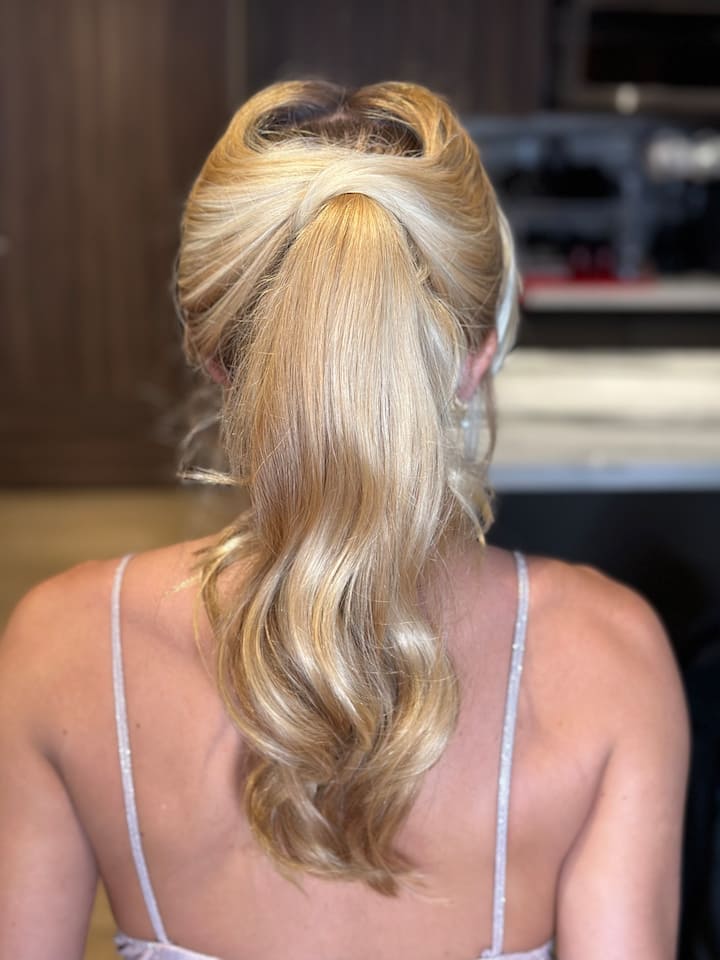 Ubah rambut Anda dengan gaya rambut serbaguna ini yang bisa ditarik ke belakang, setengah ditarik ke belakang atau longgar dengan gelombang. Alternatif ini mencakup aksesori penting seperti tali rambut, pin, dan semprotan rambut.