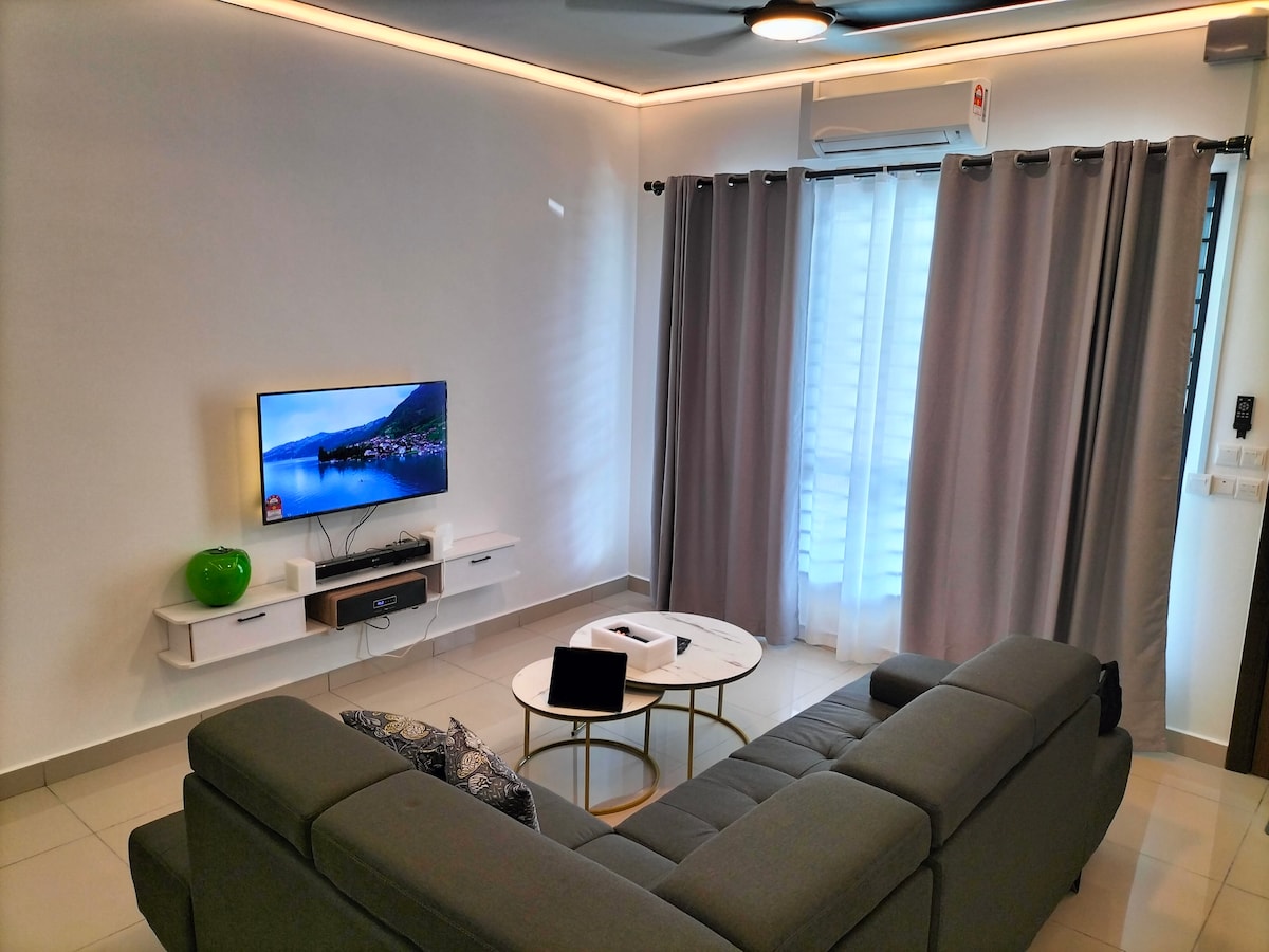 Masuklah ke ruang yang dirancang untuk ketenangan dan kenyamanan. Casa de Luna adalah tempat liburan modern Anda di bawah sinar bulan homestay yang menyatukan kesederhanaan dan kehangatan, cocok untuk liburan yang tenang, keluarga kecil, atau liburan akhir pekan yang damai. โจ Yang Membuatnya Istimewa: โข Tata letak 3 Kamar Tidur yang Nyaman (dengan semua AC termasuk ruang tamu) โข Kursi Pijat Gintell โข Dapur yang cocok untuk halal dengan coway dan microwave โข Unifi 100 Mbps dan TV 65" (dengan Netflix) โข Mesin cuci dan pengering โข Kolam renang, pusat kebugaran, dan taman bermain anak-anak