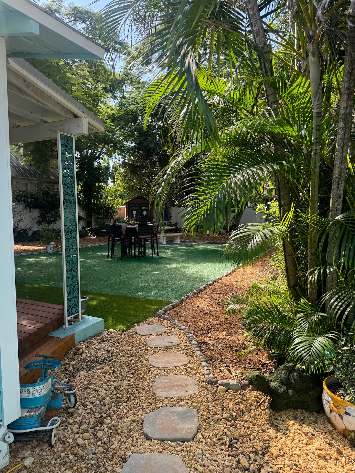 Selamat datang di Sunny Boho Beach Studio, liburan Anda yang tenang di Stuart, Florida! Studio damai di dupleks ini menawarkan privasi, hanya berbagi dinding dengan unit yang berdekatan. Anda hanya perlu bersepeda cepat ke area pusat kota Stuart yang semarak dengan banyak restoran hebat. Nikmati dapur lengkap, ruang makan dan tamu yang nyaman, dan mesin cuci/pengering kompak untuk kenyamanan. Bersantai di kamar mandi yang direnovasi dengan indah. Harap perhatikan bahwa Anda tidak dapat mengakses kolam renang dengan unit ini.