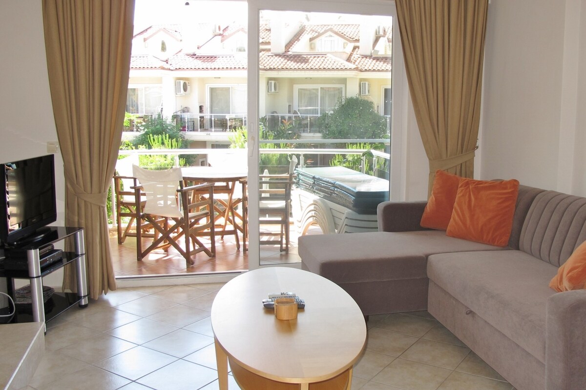 Terletak di komplek yang layak hanya 3 km dari pantai Calis Fethiye yang terkenal di dunia, apartemen kami menawarkan akomodasi untuk hingga 4 orang berkat tempat tidur double dan tempat tidur sofa double yang bisa dibuka. Di komplek ini, tamu diberi kesempatan untuk bersenang-senang dengan taman bermain, kolam renang besar seluas 140 m2, dan taman besar. Nomor Registrasi: 48-9398