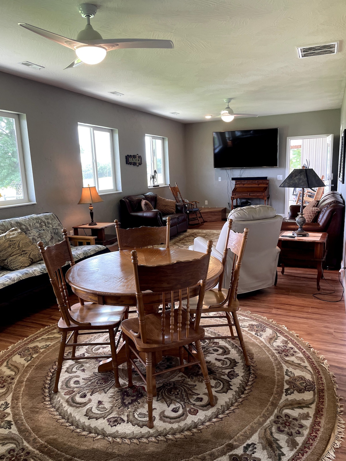 Nikmati tempat peristirahatan pedesaan! Apartemen studio kami yang cocok untuk keluarga tenang dan nyaman, tanpa ada orang kecuali burung dan sapi sebagai tetangga Anda (dan kami! Kami tinggal di rumah utama.) Studio kami adalah liburan yang sempurna atau berhenti di sepanjang perjalanan Anda. Kamar mandi lengkap, dapur, ruang cuci, dan wi - fi. Nikmati jalur alam sepanjang 1/2 mil, area piknik hutan dengan lubang api, & taman bermain! Dapat mengakomodasi hingga 3 orang dewasa + bayi, 2 orang dewasa + 2 anak, atau 1 orang dewasa + 3 anak. Tidak bisa untuk 4 orang dewasa. (Lihat pengaturan tempat tidur!)